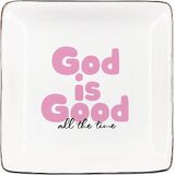 God Is Good Pink Jewelry Tray, Christian Bible Verse Gifts Ceramic Jewelry Dish Tray for Rings & Earring for Women, Religious Faith Based Gifts Ring Trinket Dish for Women