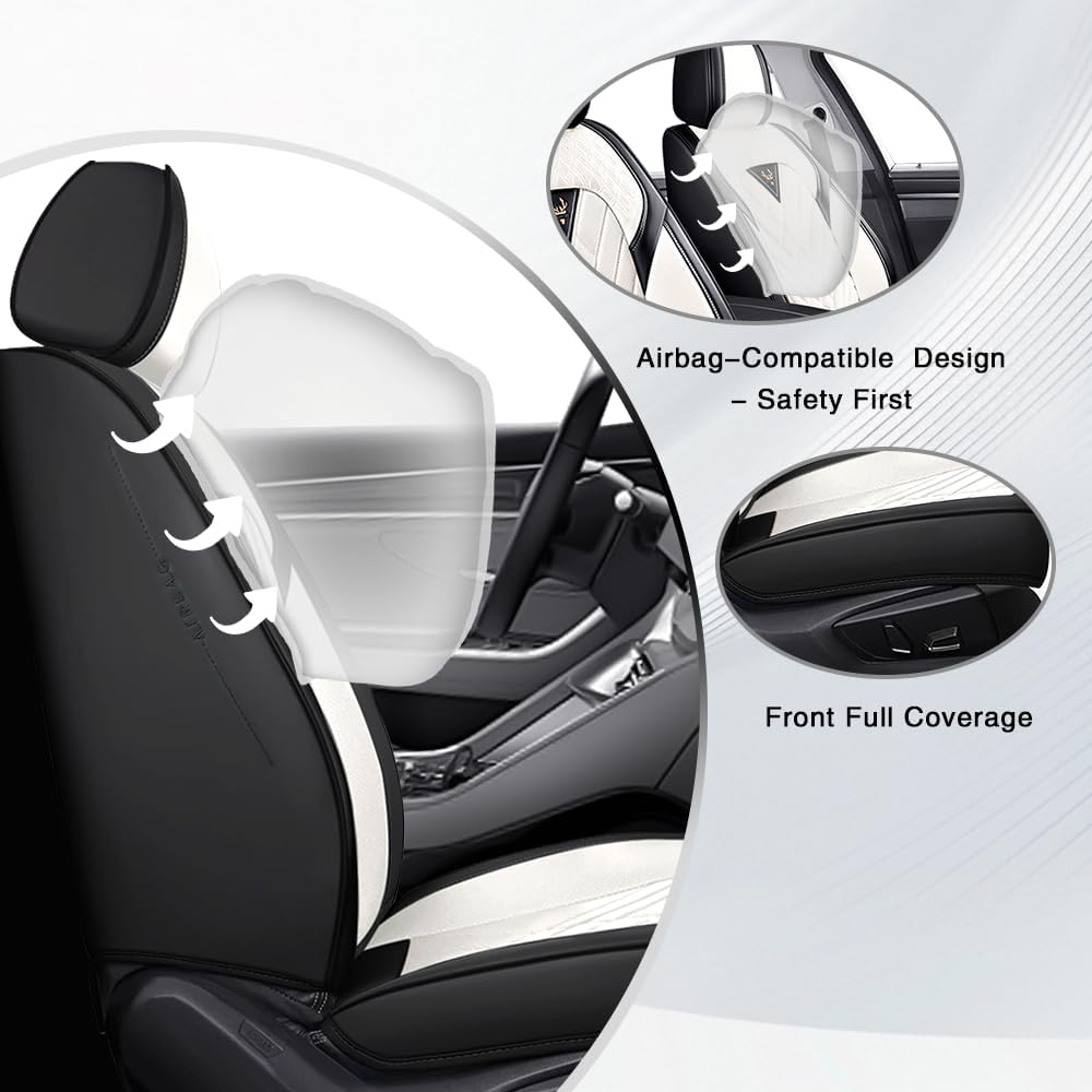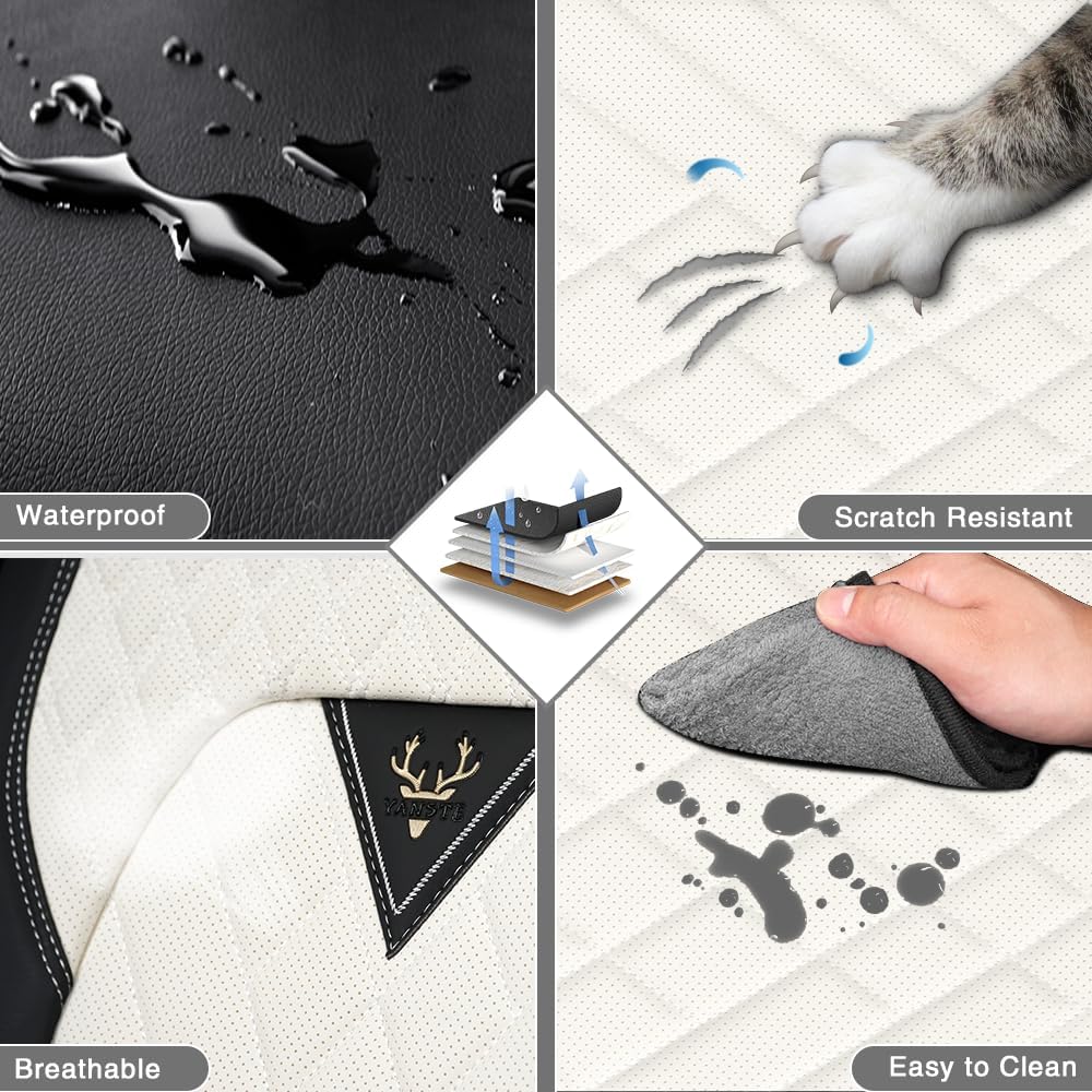 • 【SUPERIOR FAUX LEATHER QUALITY】: Made from top-grade faux leather, our seat covers boast exceptional quality, durability, and resistance to wear. They not only enhance seating comfort but also provide a waterproof barrier, protecting your car seats from spills, stains, and everyday wear and tear.