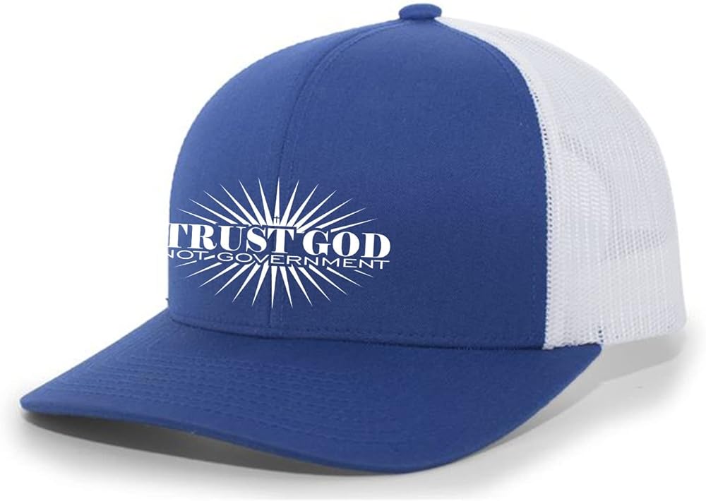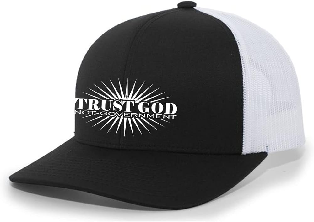 DESIGN: Trust God Not Government Christian Mens Hat Embroidered Mesh Back Trucker Baseball Cap