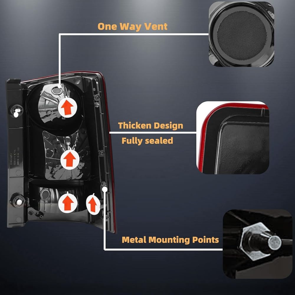 【TULALUX TAIL LIGHTS FEATURES】- ENHANCE VEHICLE TAIL VISIBILITY AND APPEARANCE: A pair of taillights with turn signals and running lights will enhance your illumination, make your vehicle more visible to other drivers and passengers, and add a stylish look to the rear of your vehicle. The unique design and lighting effect will not only help you improve driving safety, but also make your car more eye-catching and show your personality.