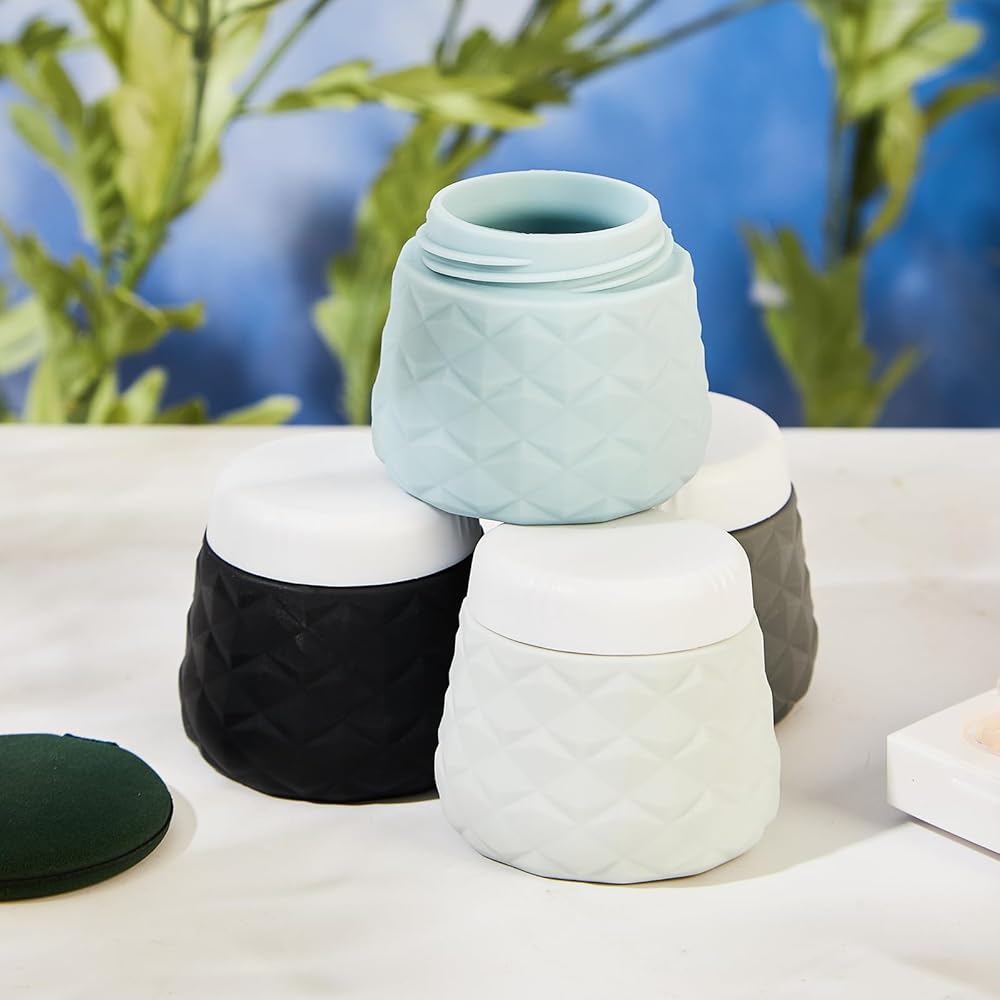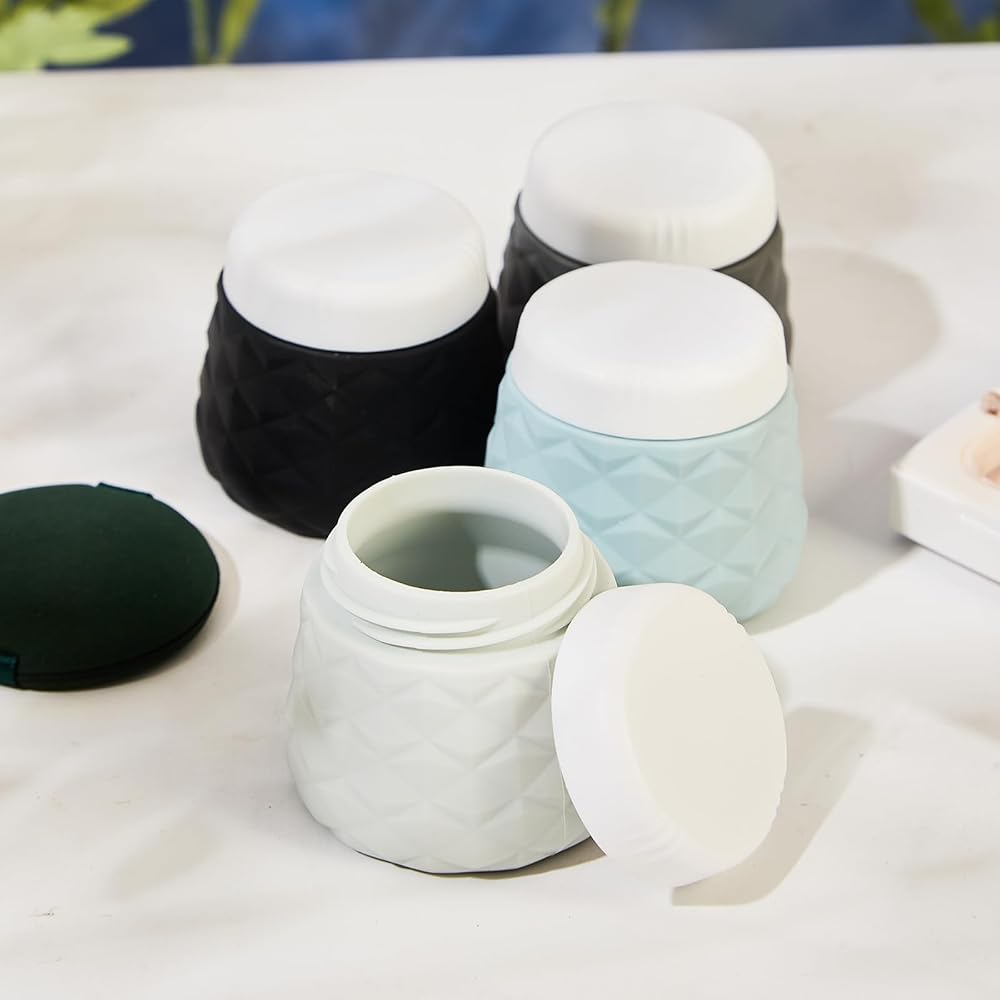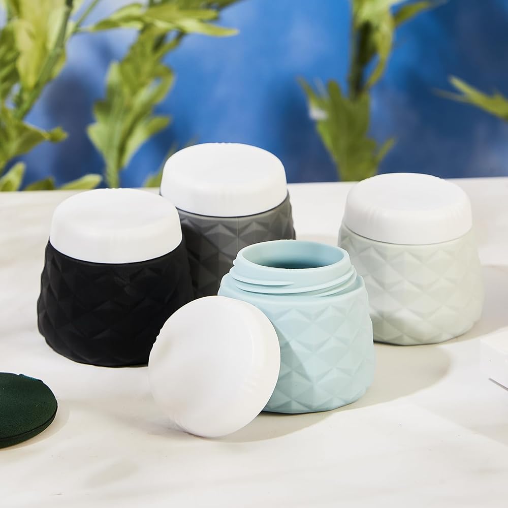 【MULTI-PURPOSE USE】Travel Size Containers have multiple uses. Travel silicone cream jars with lids can store creams, coconut oil, lotions, make-up, scrubs, ointments, accessories, beads, small jewelry, and more. Works great for gel-type items