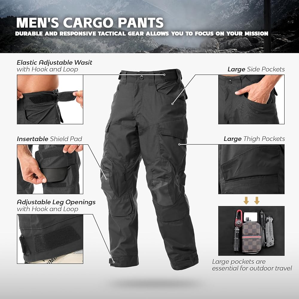 Adjustable Fit and Combat-Ready Reinforcement: Move freely with an adjustable elastic Velcro waistband and adjustable cuffs to adapt to boots or terrain. The double-layered knees are reinforced for crawling or kneeling, while you can insert removable padding slots as guards for climbing or shooting.