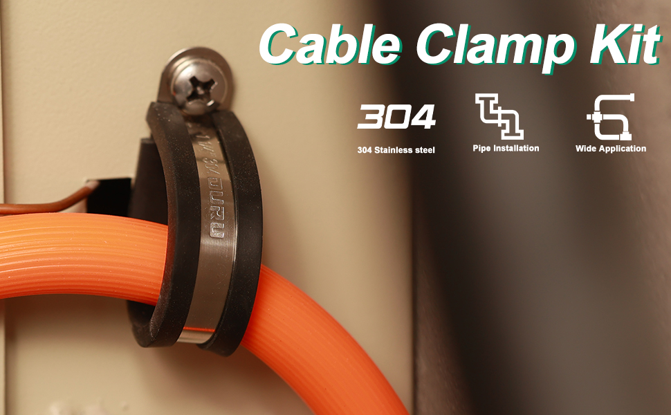 Black Metal Cable Clamps-Each cable clamp is made of 304 high quality stainless steel with rubber coated cushioned.Excellent performance in abrasion,moisture,rust,cold and heat resistance even in harsh environments. It is strong and will not rust or break.It is the best choice for demanding indoor and outdoor