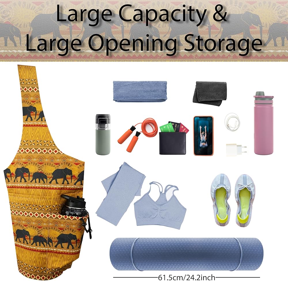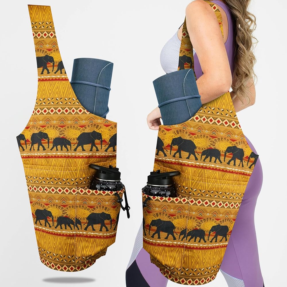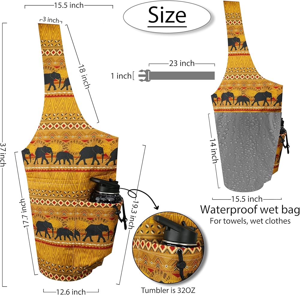 Design: The shoulder straps are designed without button fasteners, and the entire yoga bags are hand-sewn. There are adjustable buckles inside to fix the yoga mat. The front and back are printed with beautiful elephant patterns. The rich colors are very unique. The practical and beautiful multi-functional yoga bag is a great gift for yoga lovers