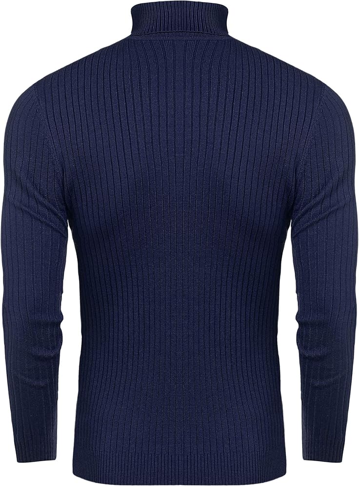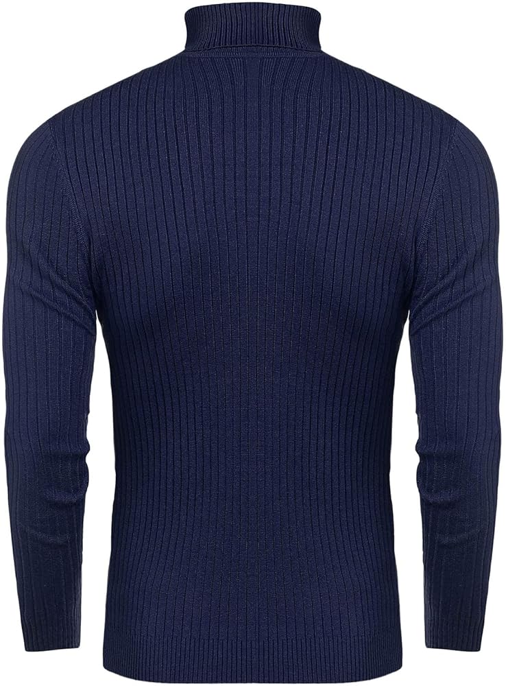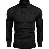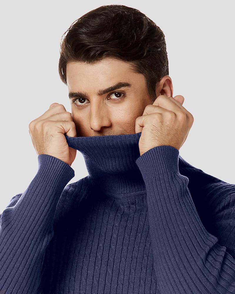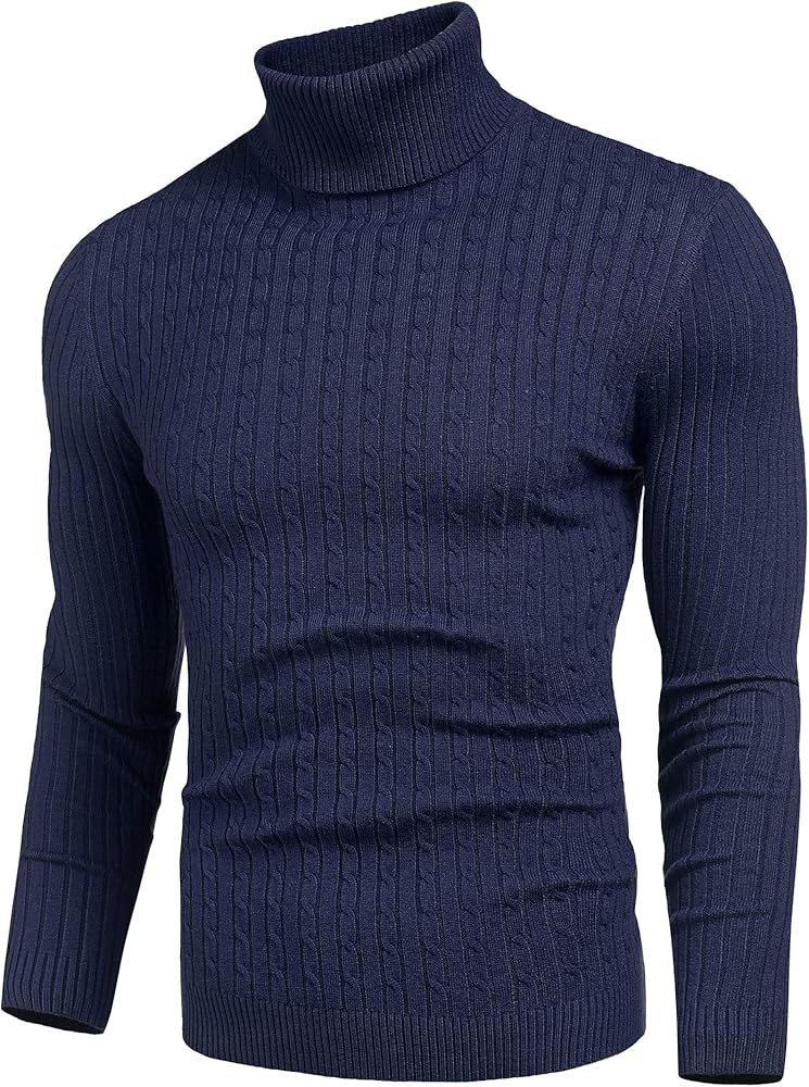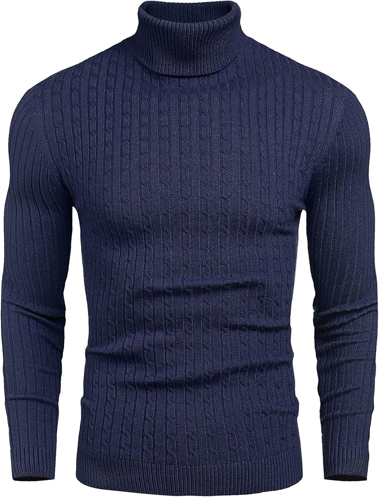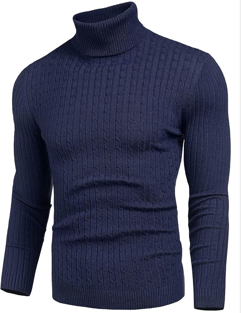 STYLISH DESIGN-- Classic turtleneck style for men, Slim fit, Thick knit trim, Solid color, Long sleeves, Modern basic cable designed pullover sweaters.
