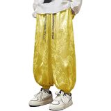 {*Unique Design*}:the smooth and breathable satin pants features ornate and ancient chinese traditional dragon jacquard,lantern-style design baggy leg pants,stretchy cuffs,offering the comfortable freedom when walking,elastic waistband with ethnic handwork plait drawstring, this oriental retro chinese dragon pants is suitable for young and old.japanese style pants for men,samurai pants men,hakama pants men.