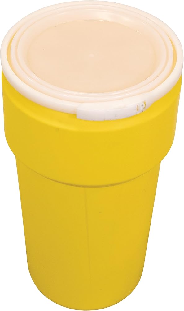 Eagle 20 Gallon Plastic Drum with Lid, Plastic Lever-Lock, 30.5"x15.8", Open Head Lab Pack Drum Made of Durable, Lightweight HDPE, Withstands Weather and Chemicals, Made in USA, Yellow, 1623