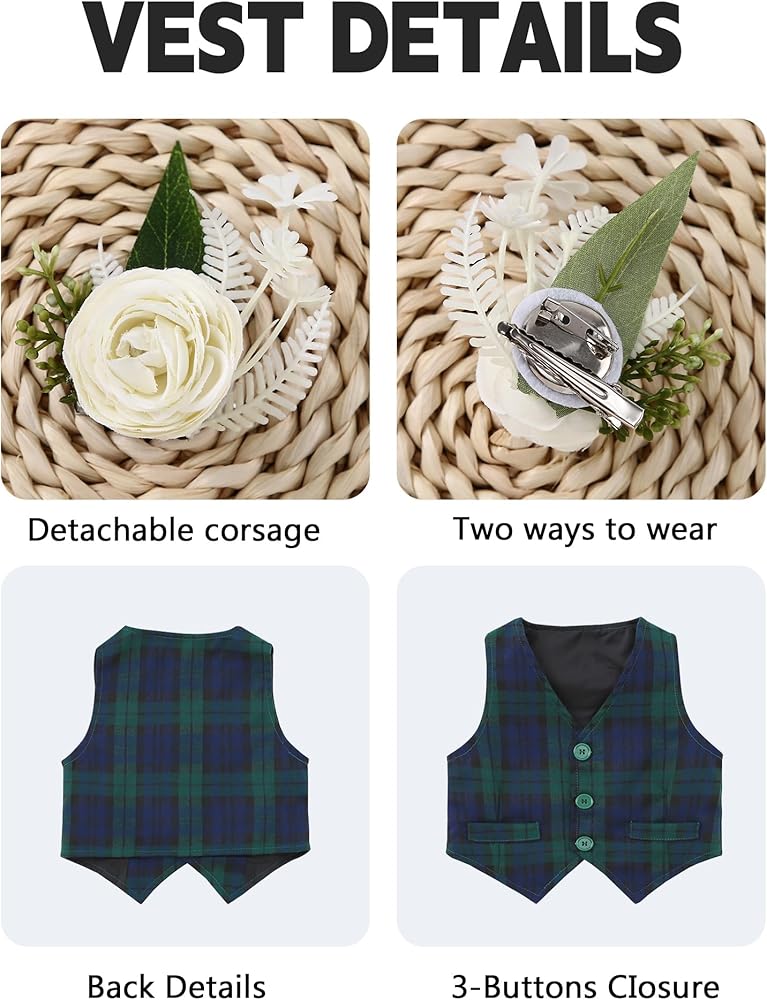 Package: 1x Baby boy dress shirt + 1x Vest + 1x Bow tie + 1x Corsage + 1x Pants. Machine wash and hand wash are both available. Provide the most comfortable and fashionable wearing experience for your baby boy in daily or holiday, such as Easter Birthday Halloween Thanksgiving Christmas.
