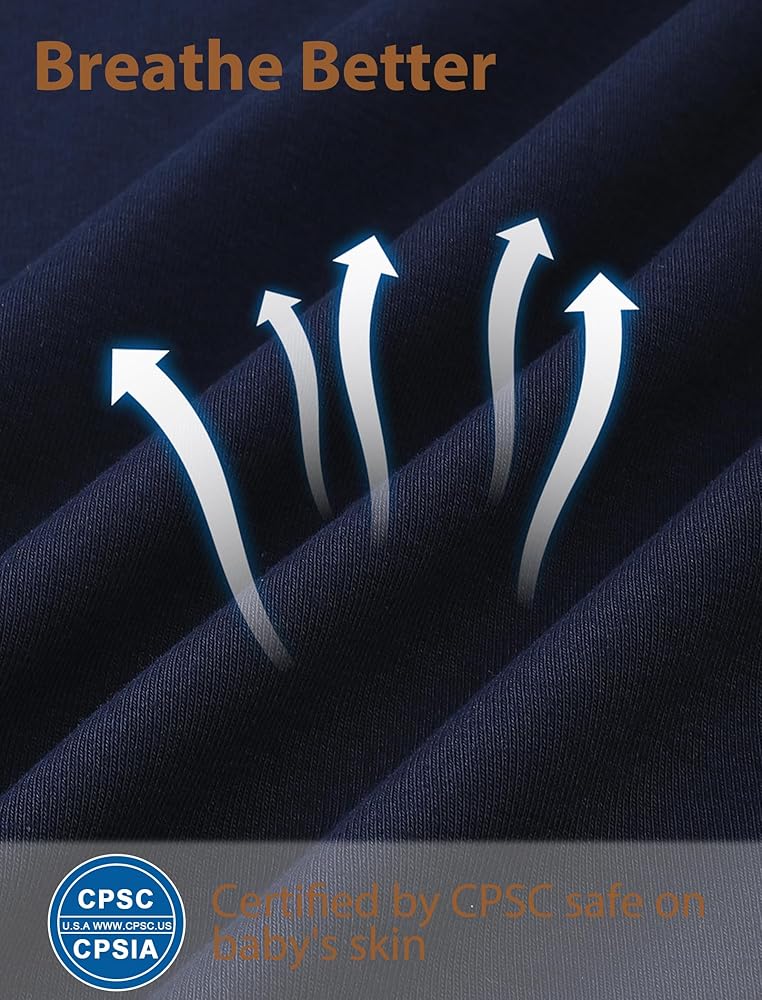 【Mom-Approved Safety & Comfort】Flamesafe certified snug-fit (CPSC 1616 Standard)! Tag-free design + stretch cuffs/ankles move freely without riding up. Pro-level tested sizing grows with active boys