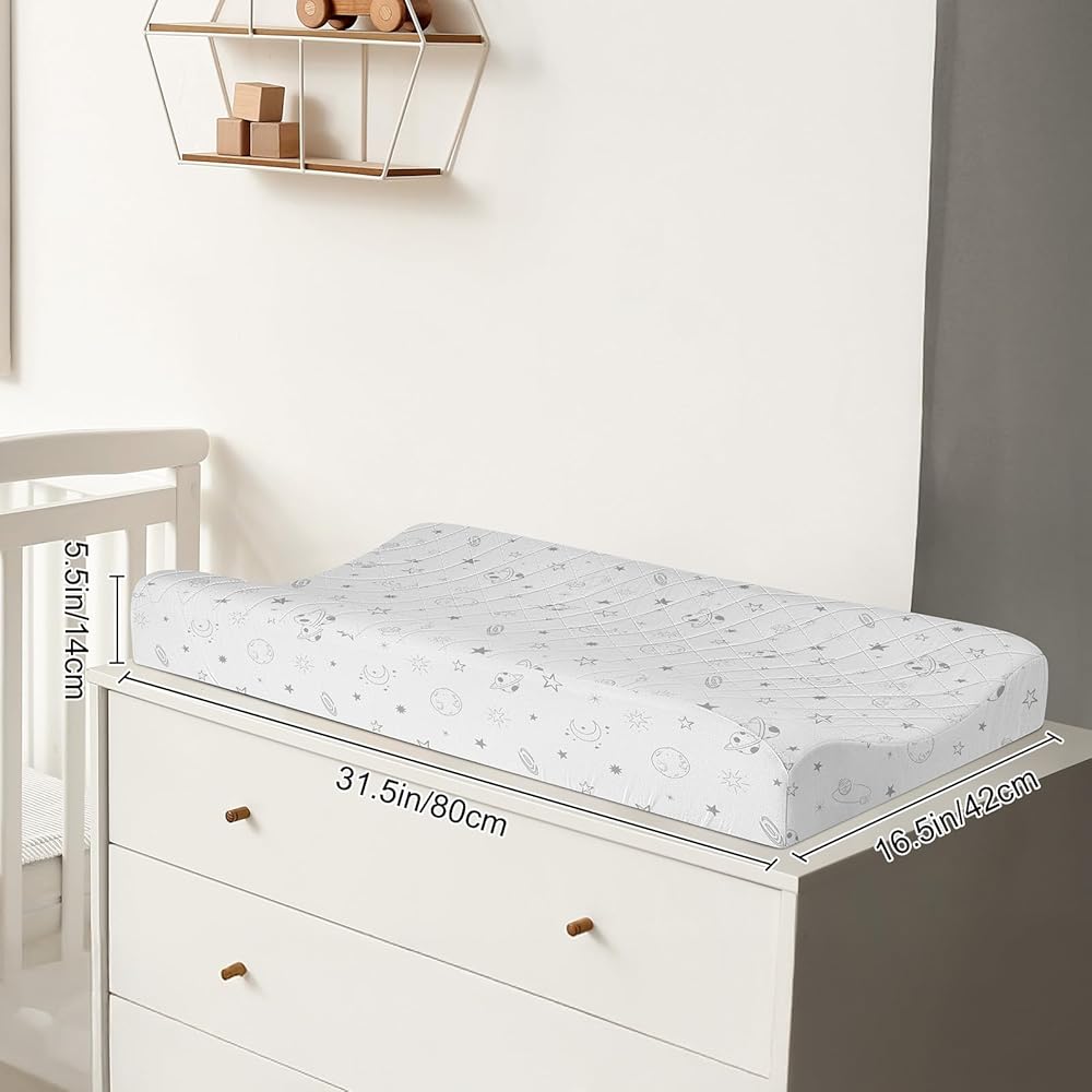 Secure Fit: Designed to fit standard 32×16 inch (81×41 cm) pads, this changing table pads is equipped with high-elastic edge bands that wrap snugly around the pad. The secure design prevents moving or slipping during diaper changes, keeping the changing pad cover in place even when your baby moves
