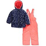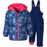 Pink Platinum girls heart print snowsuit jacket with contrast color snow bib