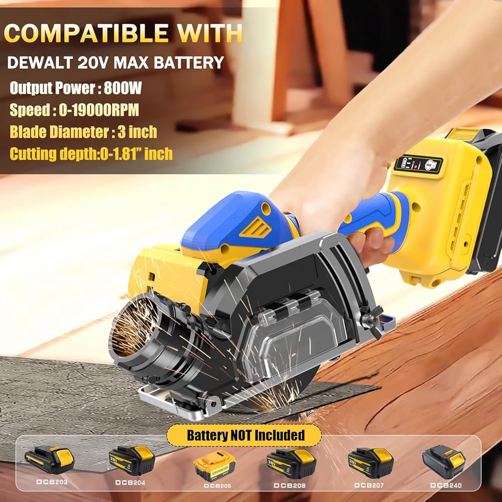 【BATTERY COMPATIBLE】The cordless cut off tool compatible with DEWALT 20V LITHIUM-ION batteries, (DCB200-DCB206 models). Note: Batteries sold separately, NO Battery Included.