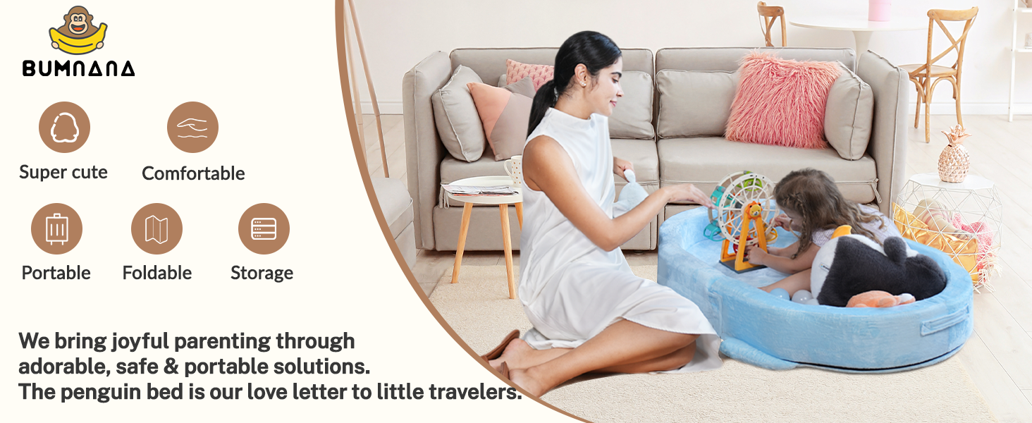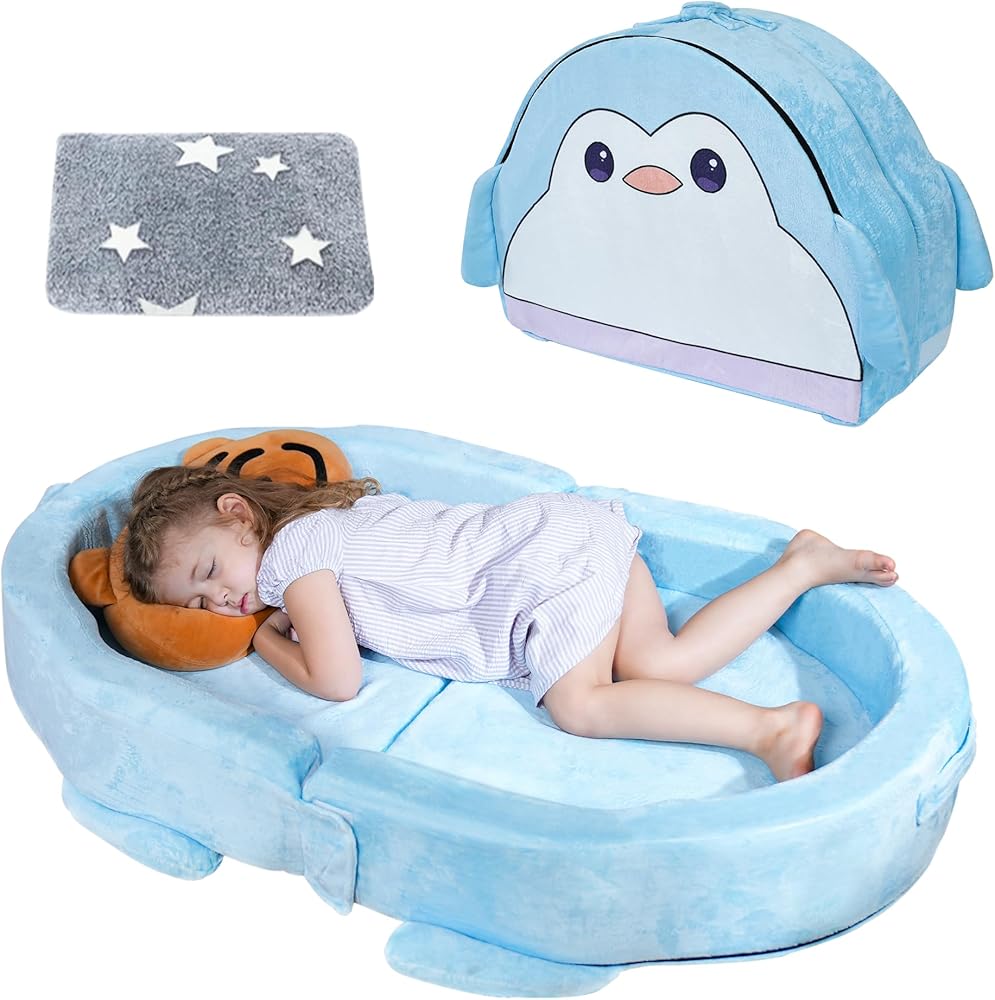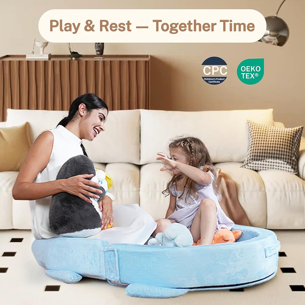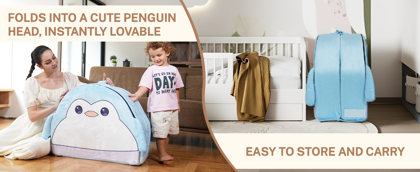 【Safe & Kid-Friendly Materials】 Crafted with soft double-layer velvet and high-density sponge, this toddler floor bed is skin-friendly, non-toxic, and CPC-certified. It's meeting all US safety standards. The playful penguin pattern adds charm while ensuring a cozy, supportive rest space for kids.