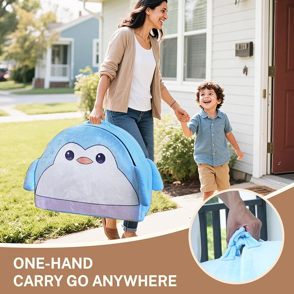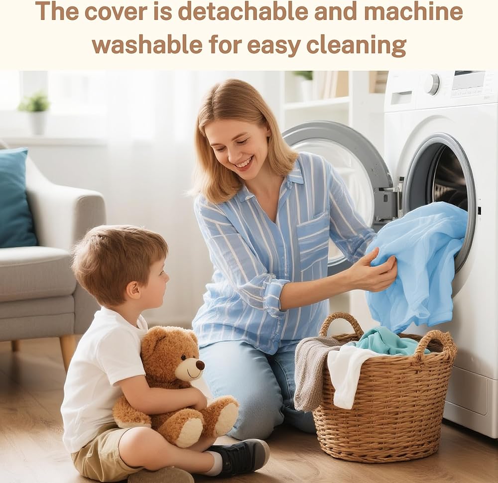 【Detachable & Easy to Clean】 The removable cover features a hidden zipper design that prevents scratches during play or sleep, while allowing hassle-free machine washing. A coordinating 39.3”x31.5” blanket is included, keeping your little one snug and warm.
