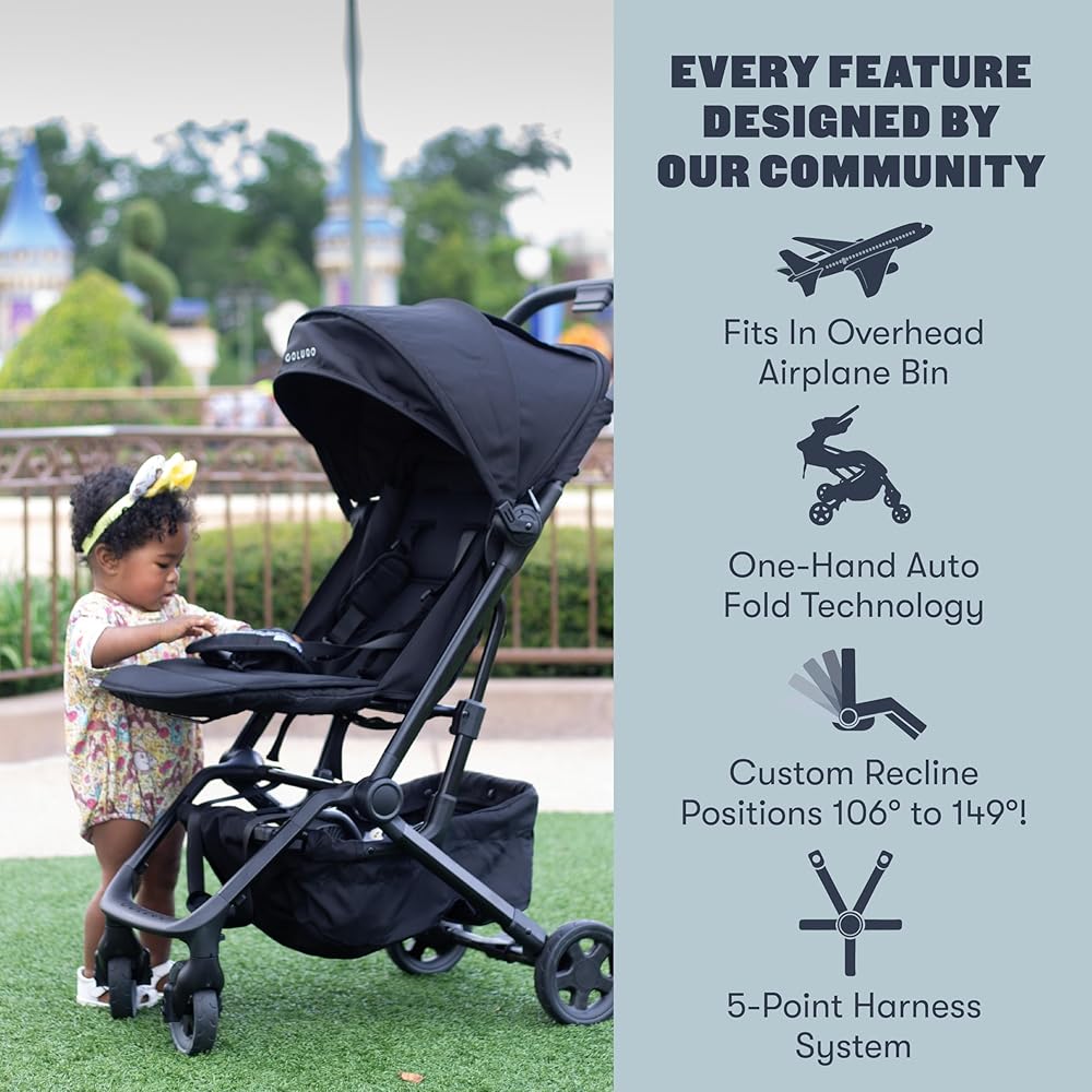 Colugo Compact Stroller+ Lightweight Travel Stroller 16lb, One-Hand Auto-Fold, Multi-Position Recline, for Infants and Toddlers Ages 6 Months to 4 Years, Rain Cover, Backpack and Cup Holder, Black