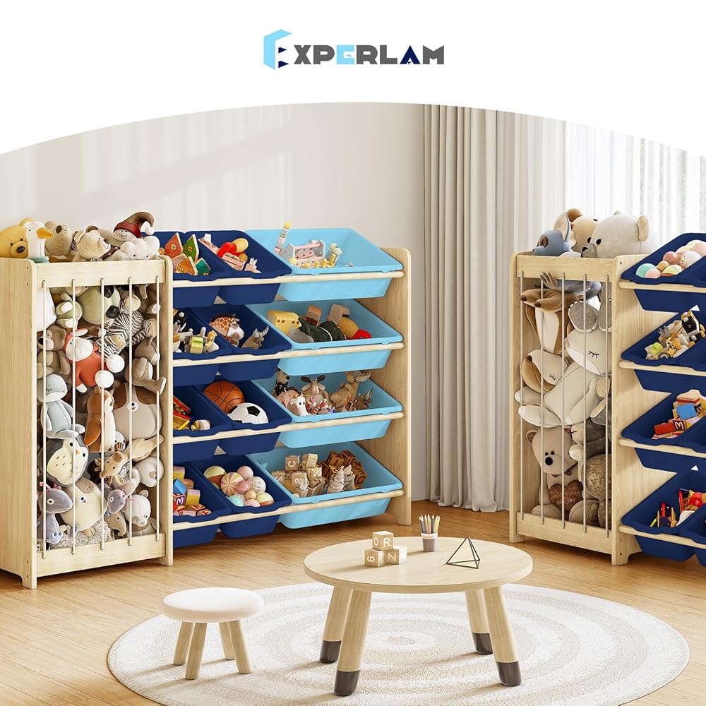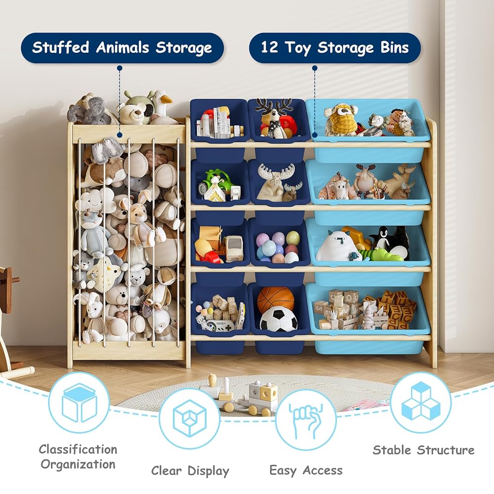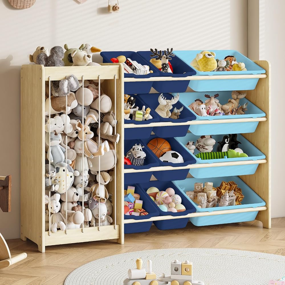 2-In-1 Multifunctional Design: This clever toy organizer features both a dedicated plush toy storage area and 12 removable storage bins (4 large, 8 small). This dual-approach gives you flexible options to tackle just about all of your child's toys. Use the partitioned bins to neatly sort and categorize different toys. Best of all, the bins are removable: This makes deep cleaning easy and enables your child to carry their belongings around the room, making tidying up fun and straightforward.