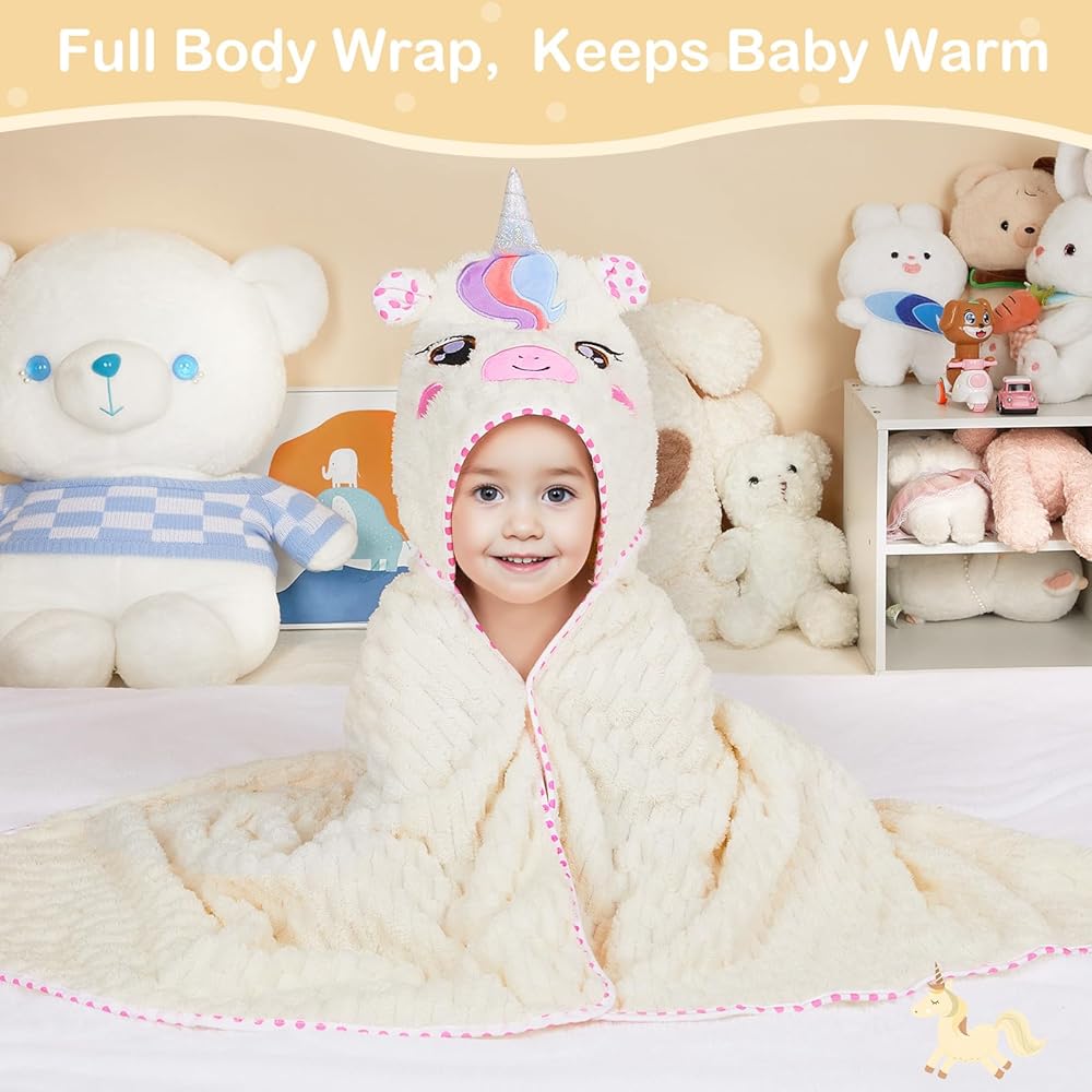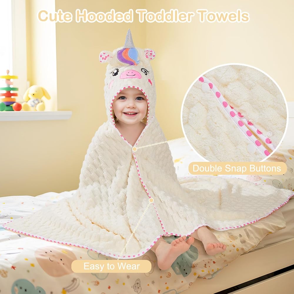 FIOBEE Toddler Bath Towel with Hood Baby Towels, 55x28 inch Large Soft Absorbent Kids Hooded Towels for 1-5 Years Old Baby Girls Boys Bath Beach Essentials Blanket, Beige Unicorn
