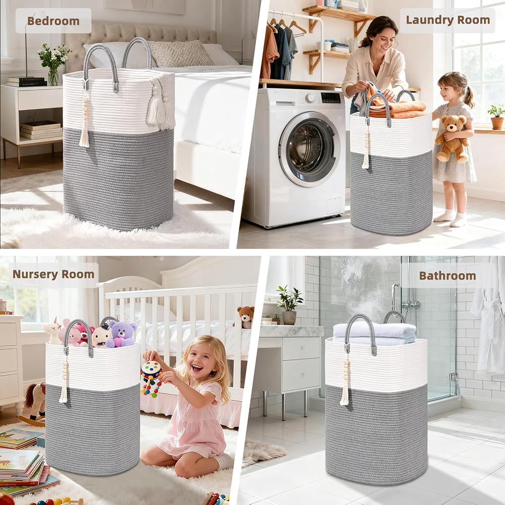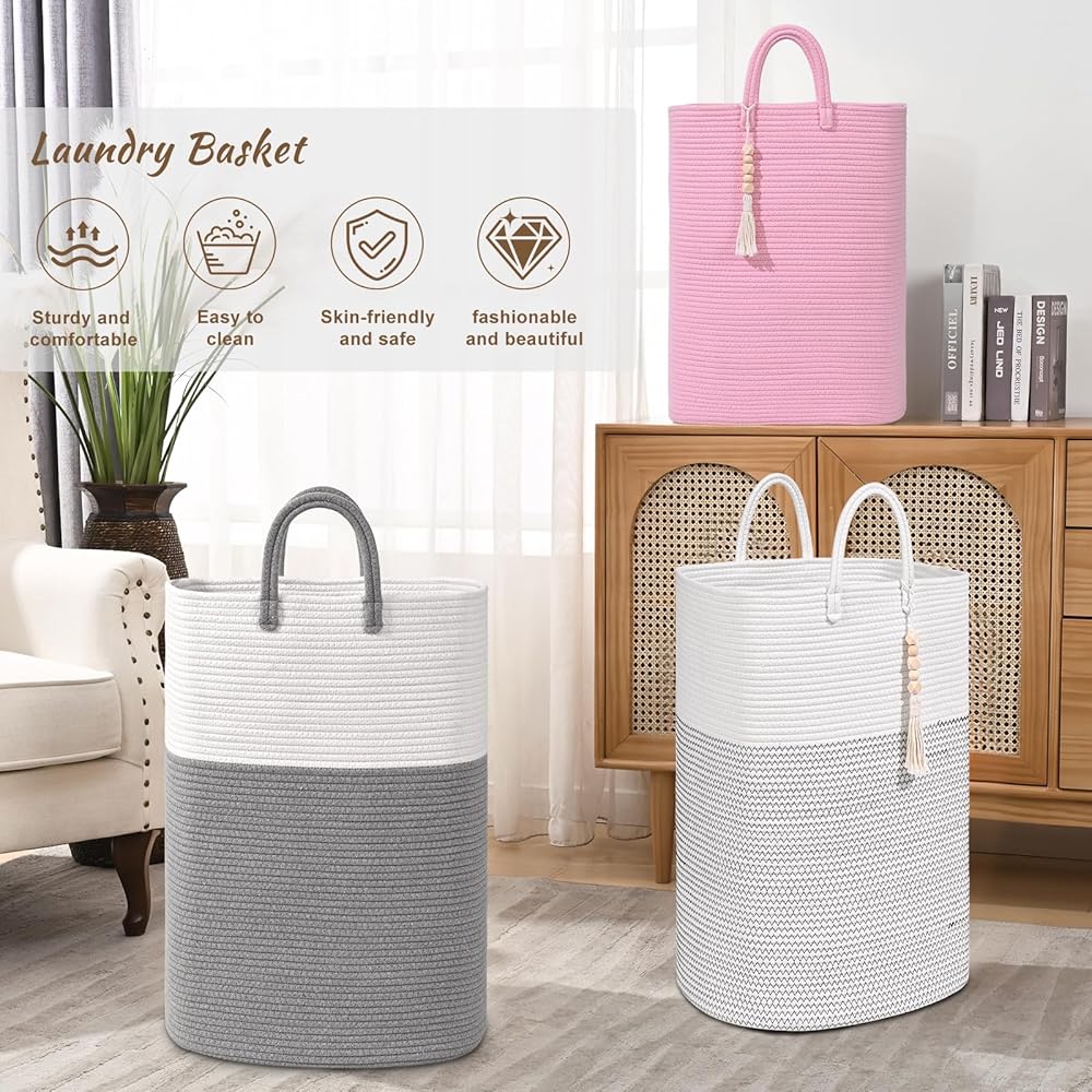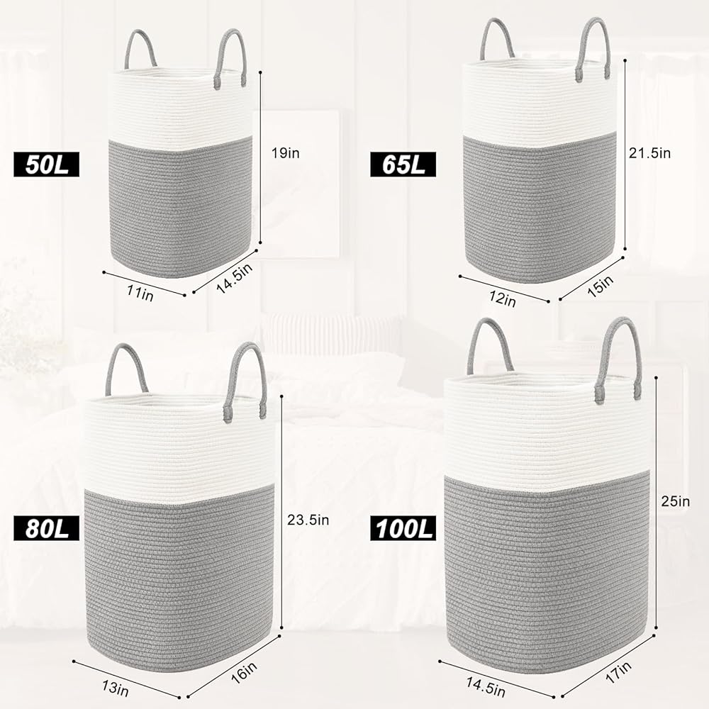 🌈[DURABLE, BREATHABLE & SKIN - FRIENDLY COTTON]: Made of sturdy and odor-free rope cotton, woven laundry basket has a solid addition to any space. Tall laundry basket quite sturdy and spacious, capable of holding a good amount without losing its shape, which adds to its practicality.