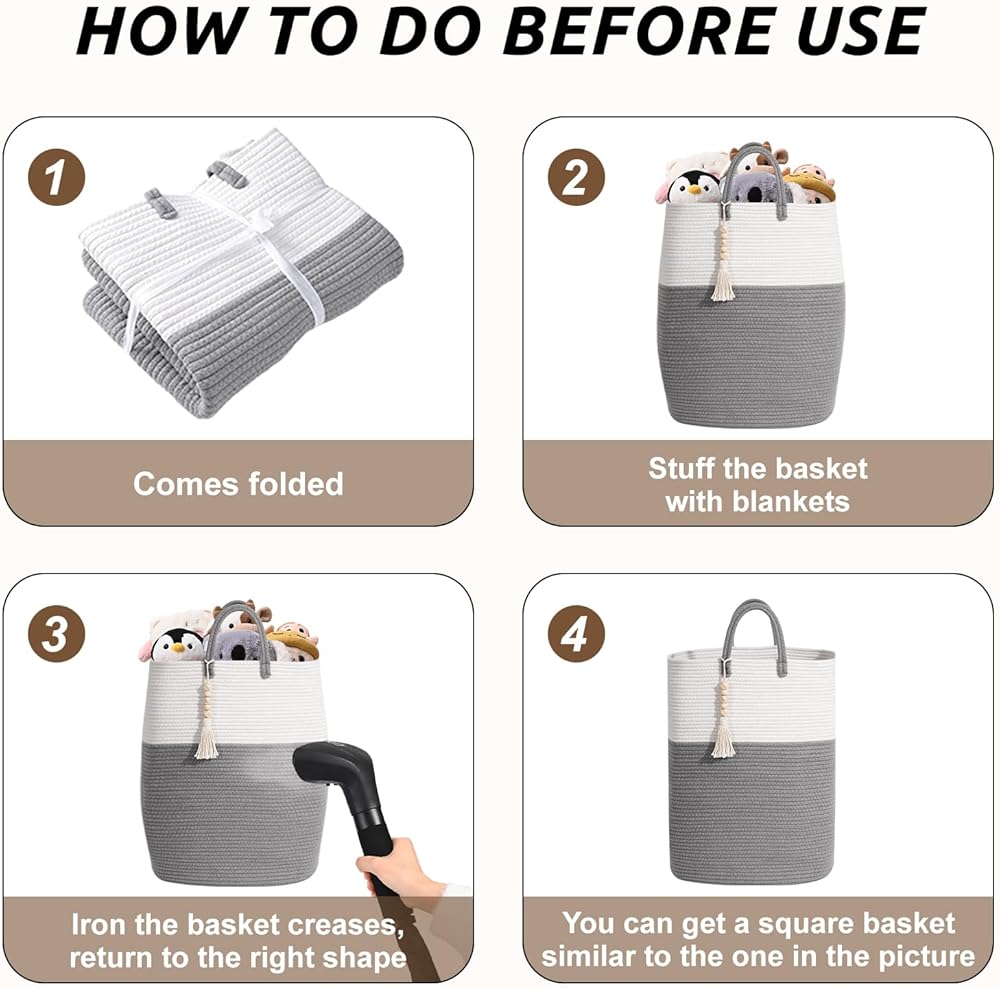 💌[WELL-STRUCTURED & EASY RE-SHAPING]: Heavy duty flexible rope cotton basket was made really strong and it's very durable, tall woven basket can also maintain its shape after use. To recover to it's original shape, fold-able basket is better to fill with some items, like blankets and then steam it with an iron.