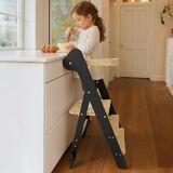 Adjustable for Growing Kids: The foldable toddler kitchen stool helper adjusts easily to two different platform levels,which can grows with your child. Whether at the kitchen counter or bathroom sink, it offers a comfortable and secure boost for helping, learning, or play