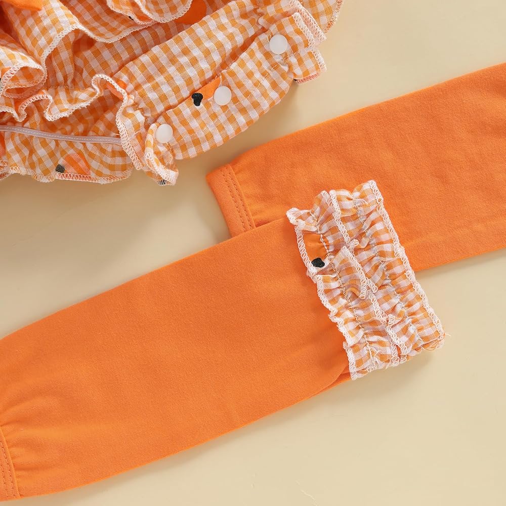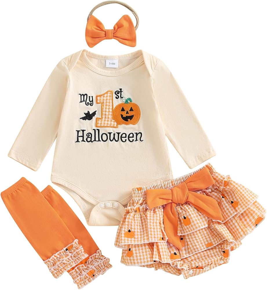 • Feature: Newborn baby girl clothes halloween, baby embroidery outfit, newborn baby girl halloween skirts set, infant girl halloween shorts set, newborn infant baby girl fall winter outfit, long sleeve, round neck, pumpkin embroidery, snap closure for easy diaper changing; Shorts: Elastic waistband, bow front, ruffles; Comes with a headband and a pair of leg warmers