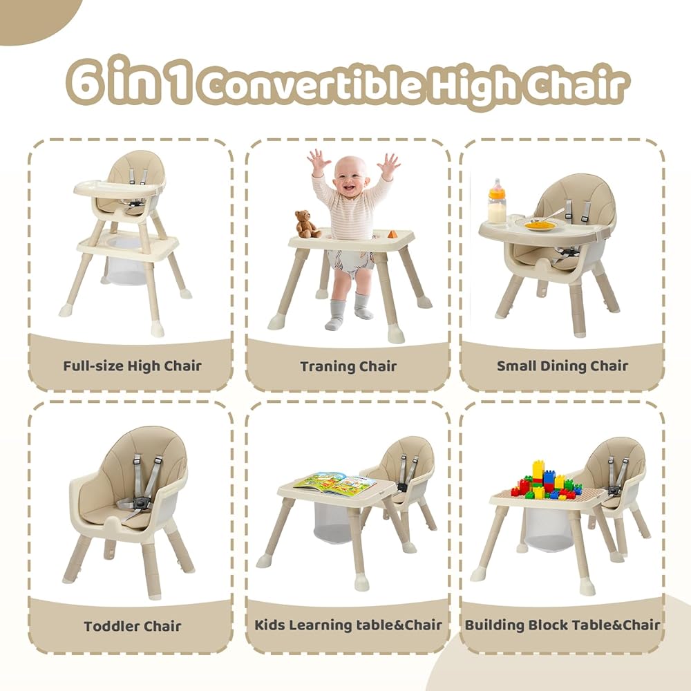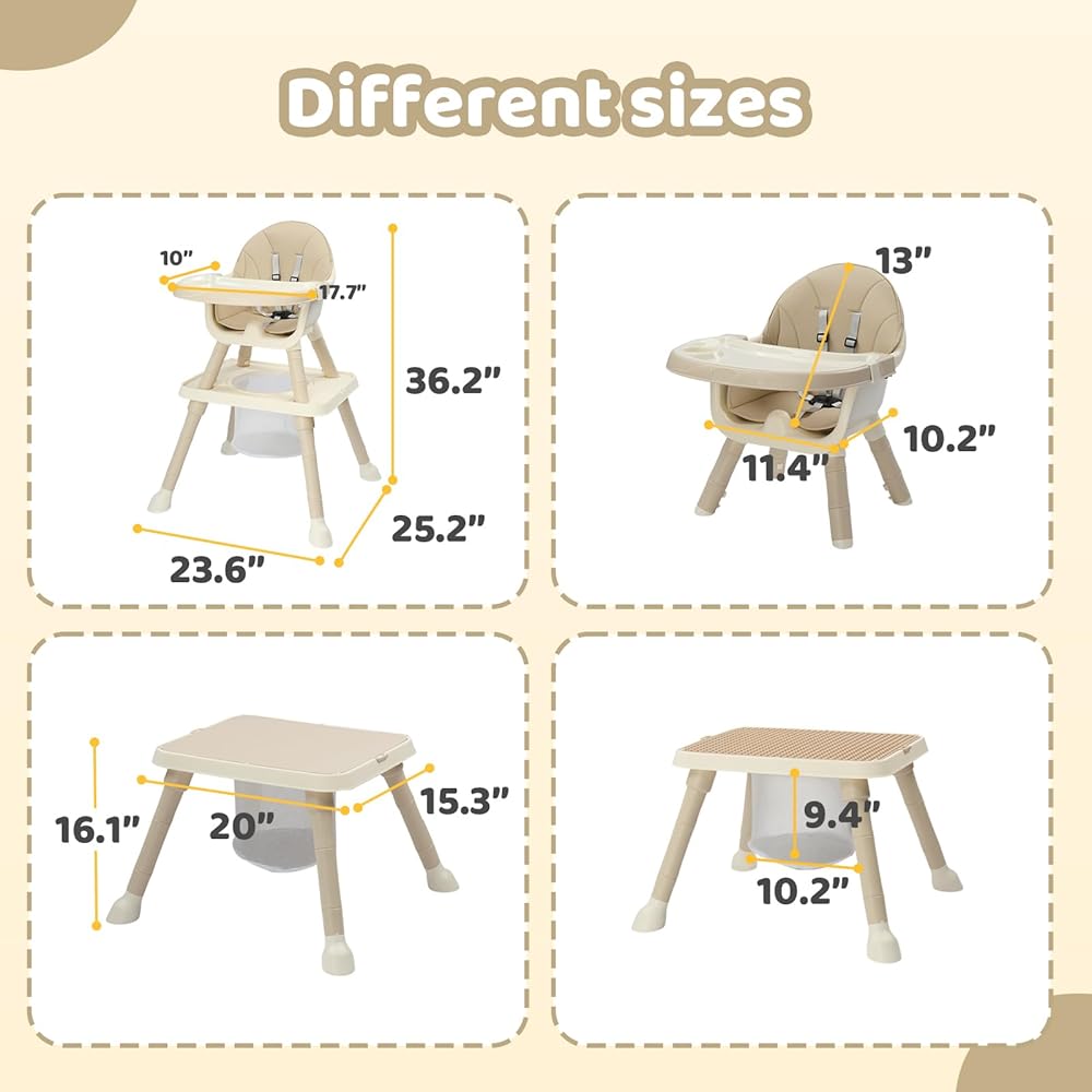 Versatile 6-in-1 Functionality: Grow with your child with our convertible highchair, transforming into a full-sized baby highchair, small dining chair, trainning chair, floor toddler chair, kids' learning table & chair, and even a building block table & chair. One chair meets all your needs as they develop