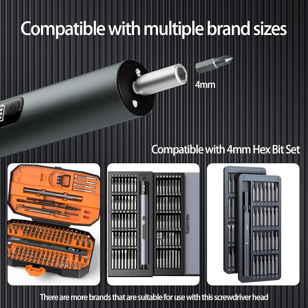 Fully-Equipped Accessories:With a range of interchangeable screwdriver bits, it can tackle various types of screws. This includes precision bits for disassembling screws on mobile phones and components of other similar products【The magnetic bits can be firmly held in place and won't slip easily. They can effectively lock onto screws, helps reduce effort during use!】