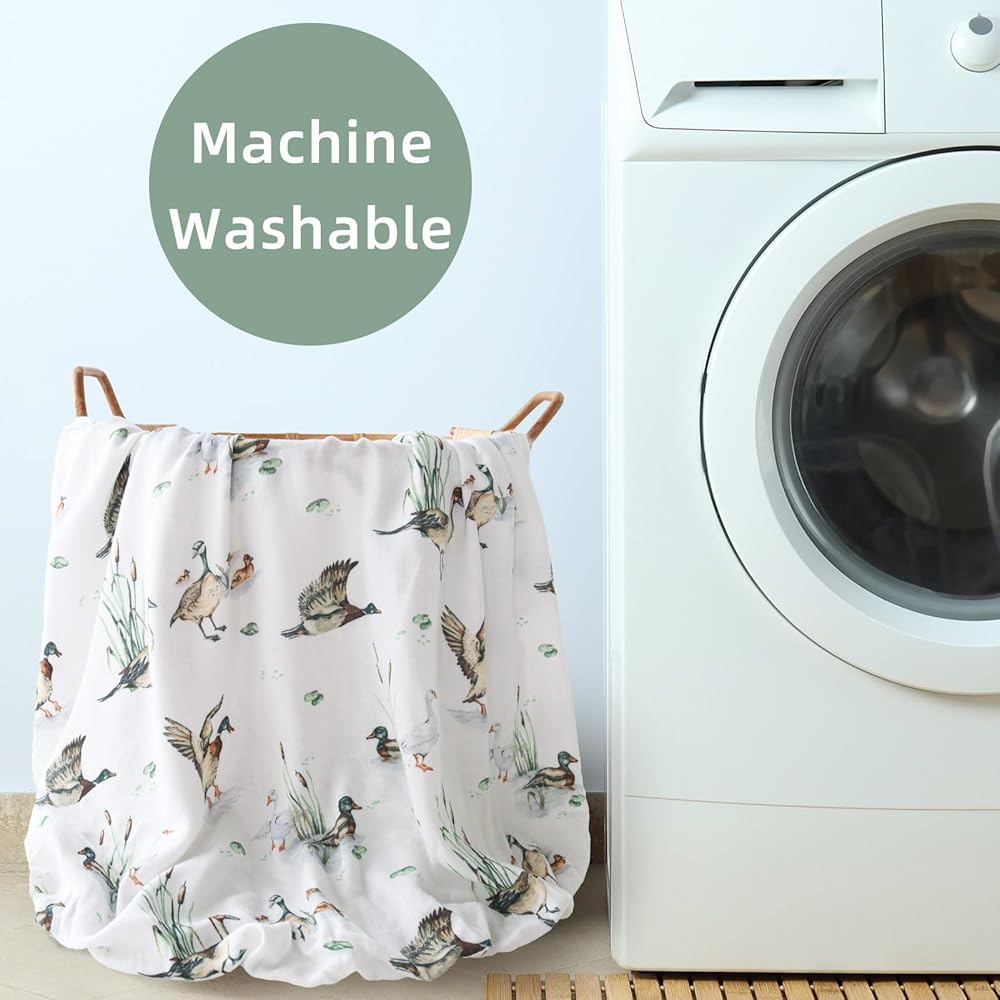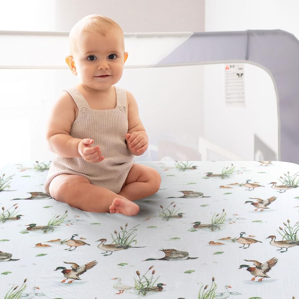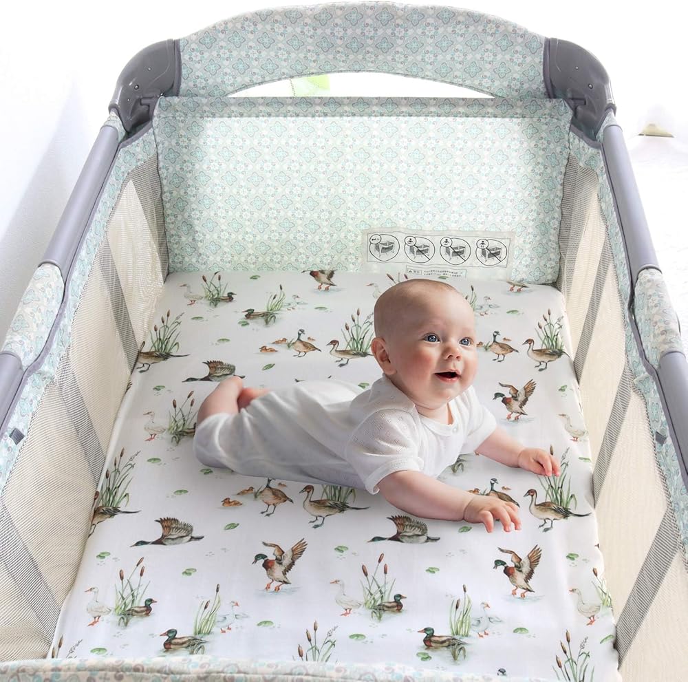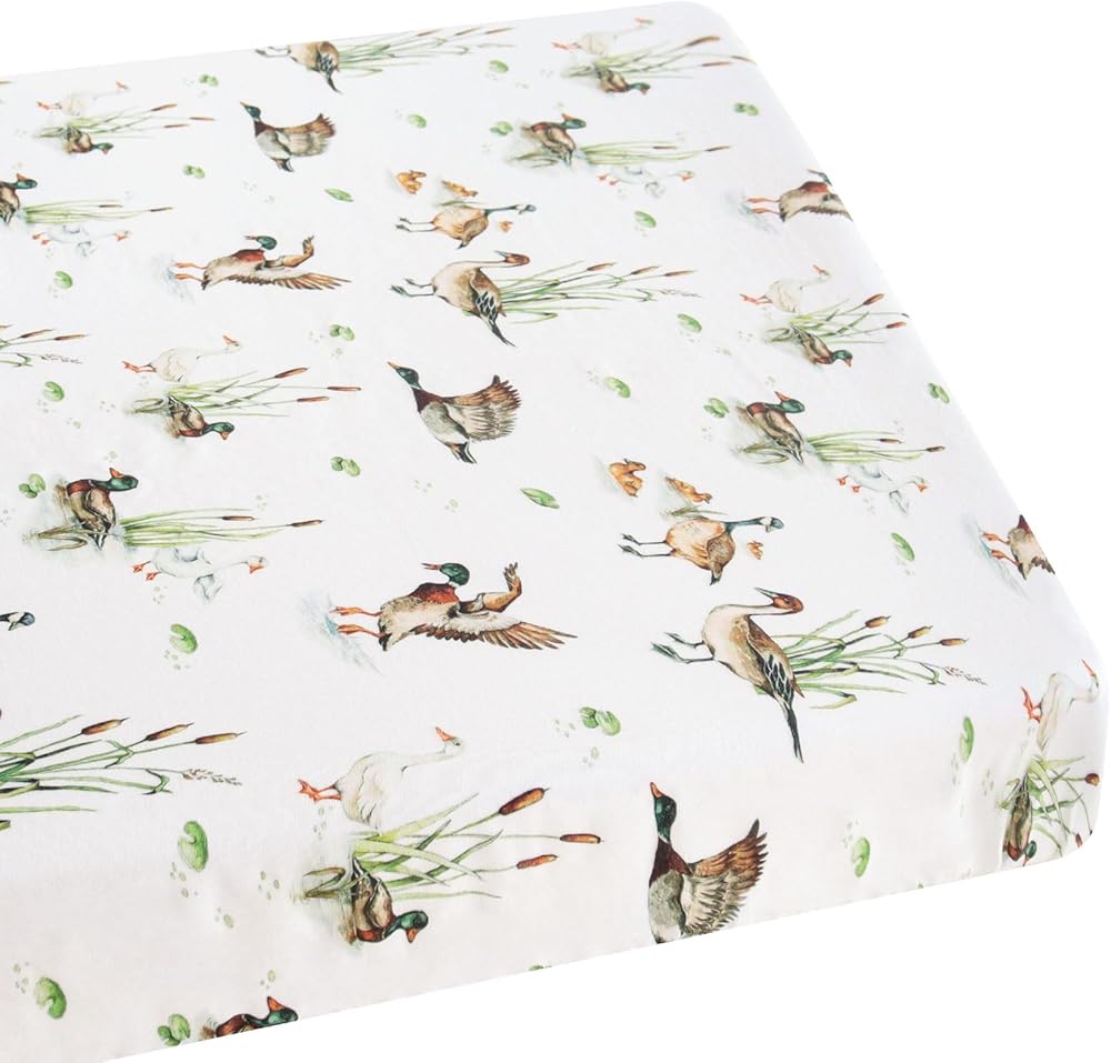 LifeTree Pack and Play Sheets Fitted for Baby, 38" x 26" x 2" Muslin Playard Mattress Pad Cover,70% Viscose from Bamboo and 30% Cotton, Mallard Duck Pattern