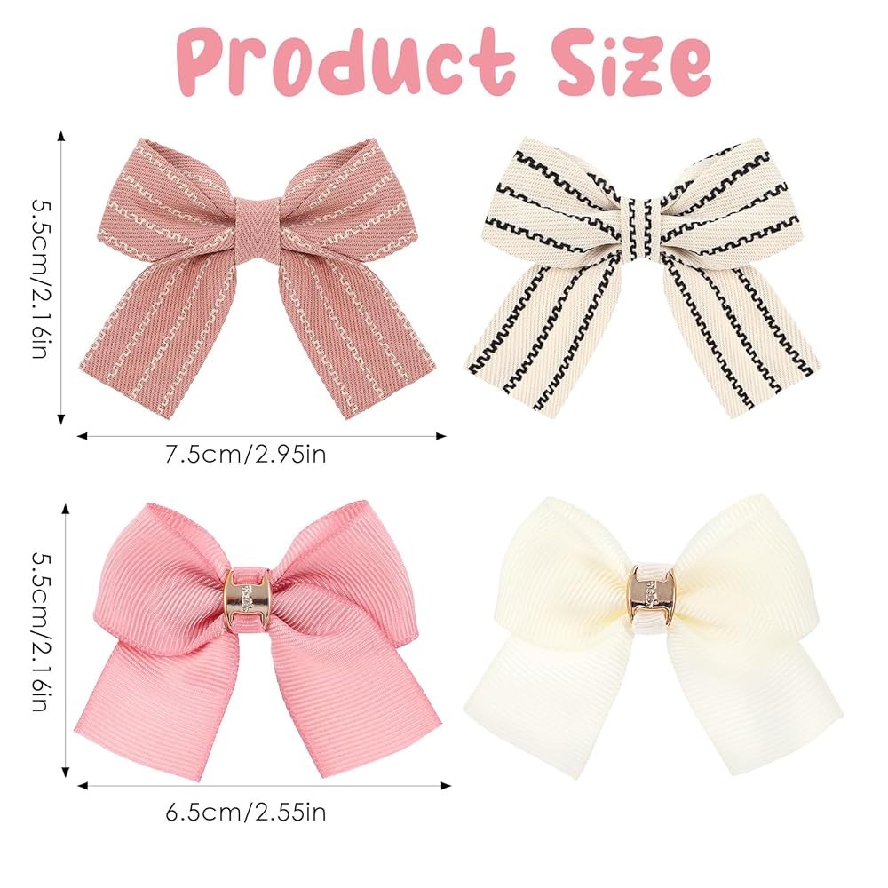 Kifmurase 8 Pcs Baby Girls Bow Hair Clips, Small Bowknot Hair Accessories Barrettes Alligator Clip Striped Ribbon Bow Hairpin for Girl Women Pet Dog