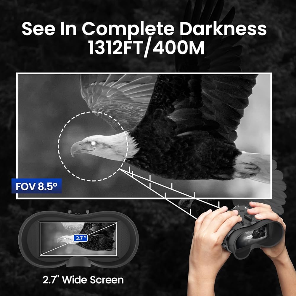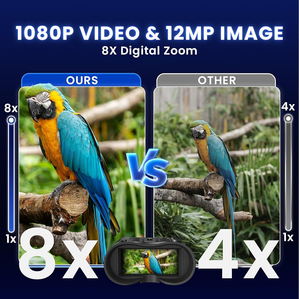 【Clear Night Vision】Spot wildlife or survey your surroundings in total darkness with 1080P HD video and 12MP photos. Whether you're out hunting or scouting, these night vision goggles let you see every detail in sharp, clear focus.