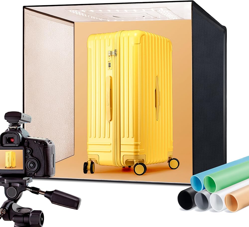 【Upgraded Lining for Perfect Lighting】This photo light box feartures reflective interior to creates pure, even illumination that suppresses harsh glare on metals, jewelry, and electronics—revealing true textures like plating finishes, gem facets, and brushed metal details