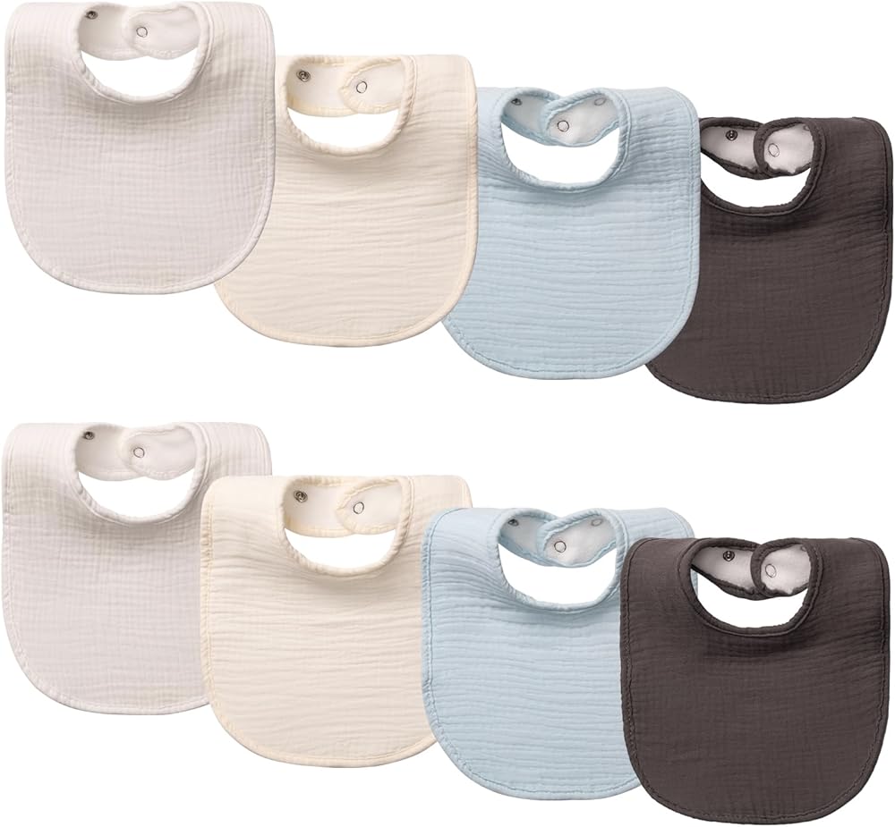 8-Pack Baby Drool Bibs, 100% Cotton, Ultra Soft & Absorbent for Newborns, Adjustable Snaps, Shower Gift