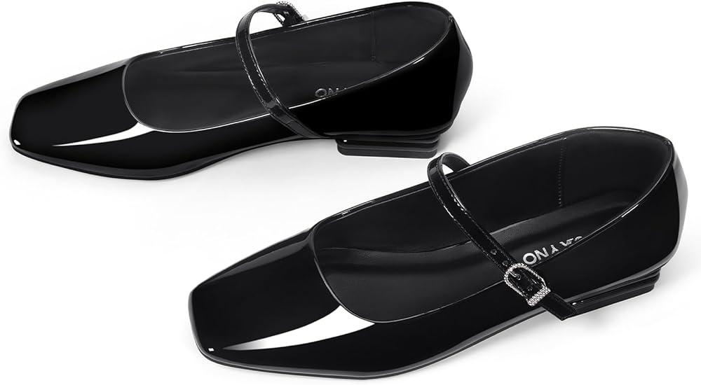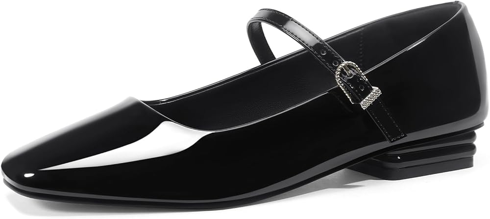 Mary Jane Shoes Women Square Toe Mary Jane Flats Casual Ballet Flats with Ankle Strap Dressy Comfortable