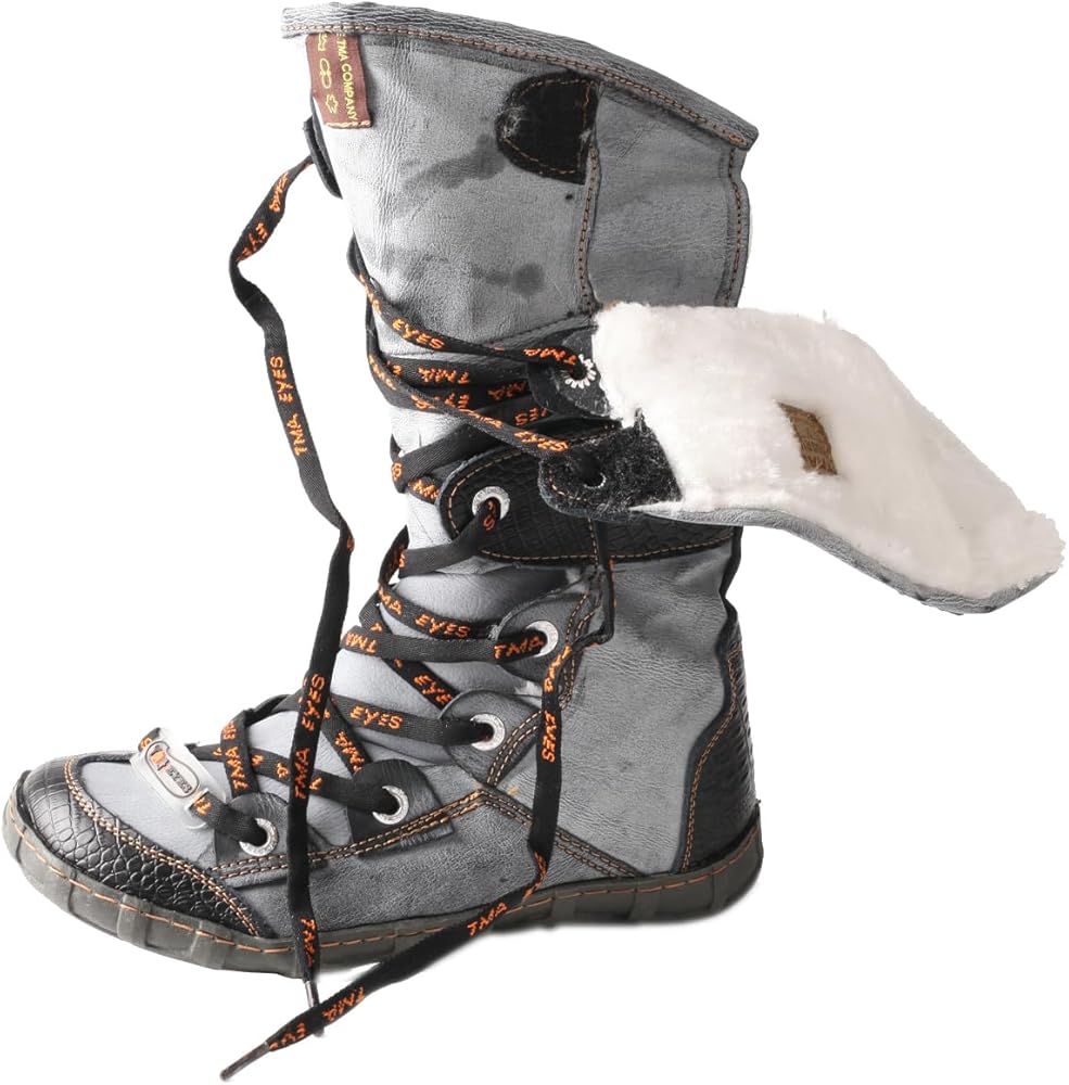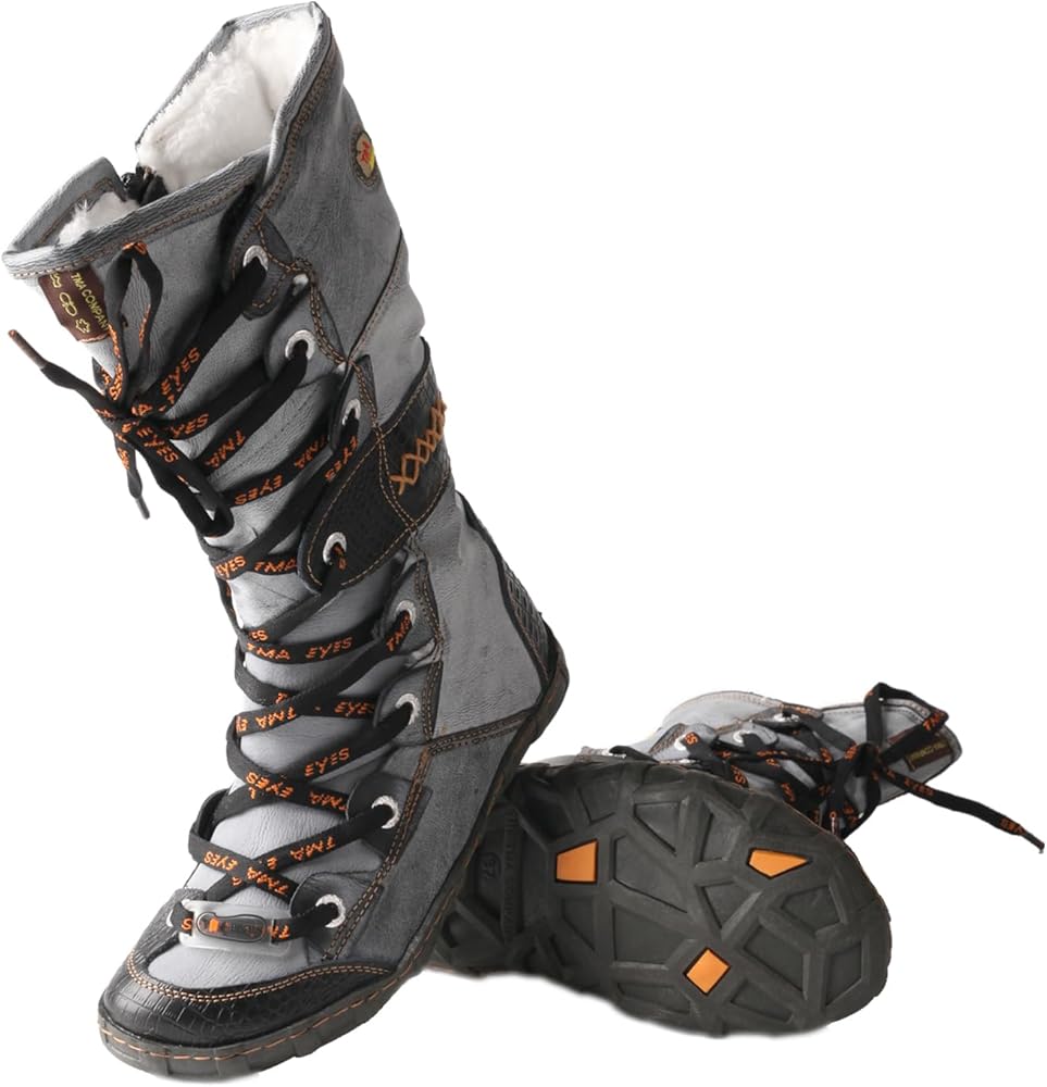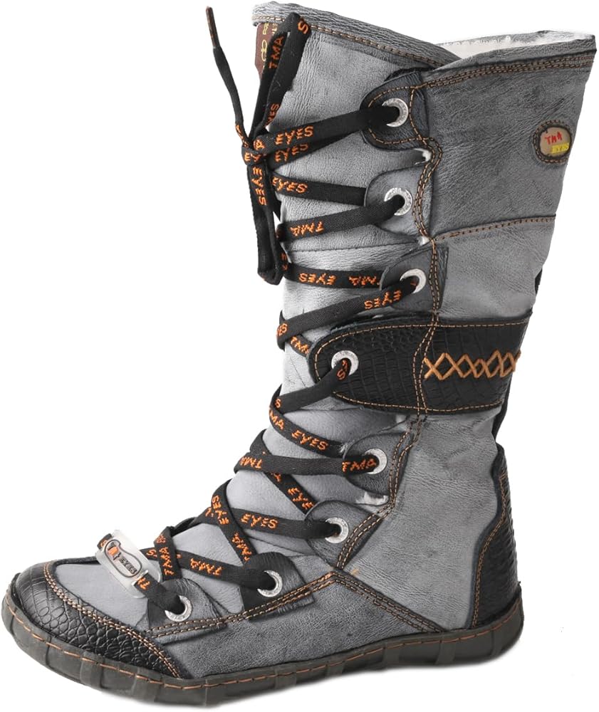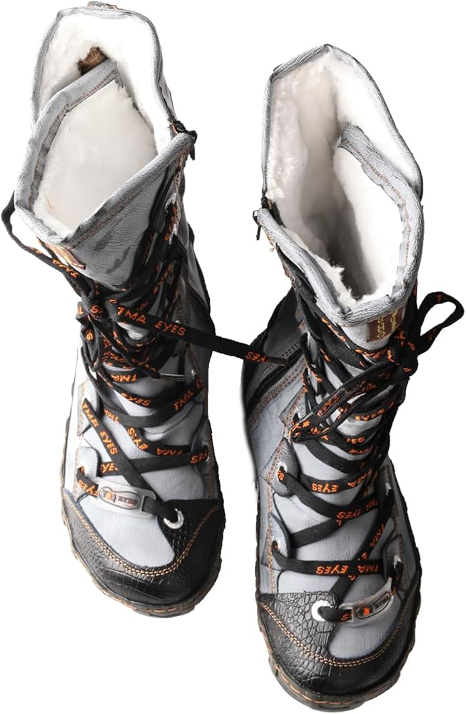 TMA EYES & MAiA Women's Retro Work Boots, Genuine Leather Warm Plush Lined Mid-Calf Boots