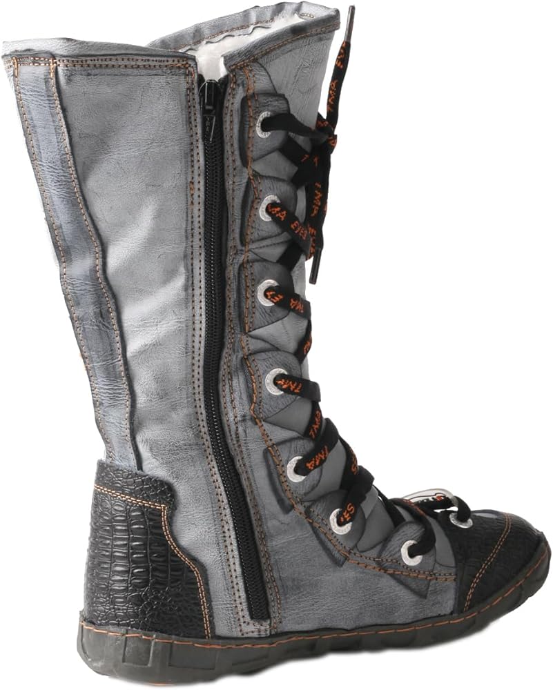 • Unique Lace-Up & Retro Design: Brand-logoed laces blend function and style, adding retro vibe. Classic mid-calf style flatters legs and supports ankles; vintage distressed details recreate classic work boot charm.
