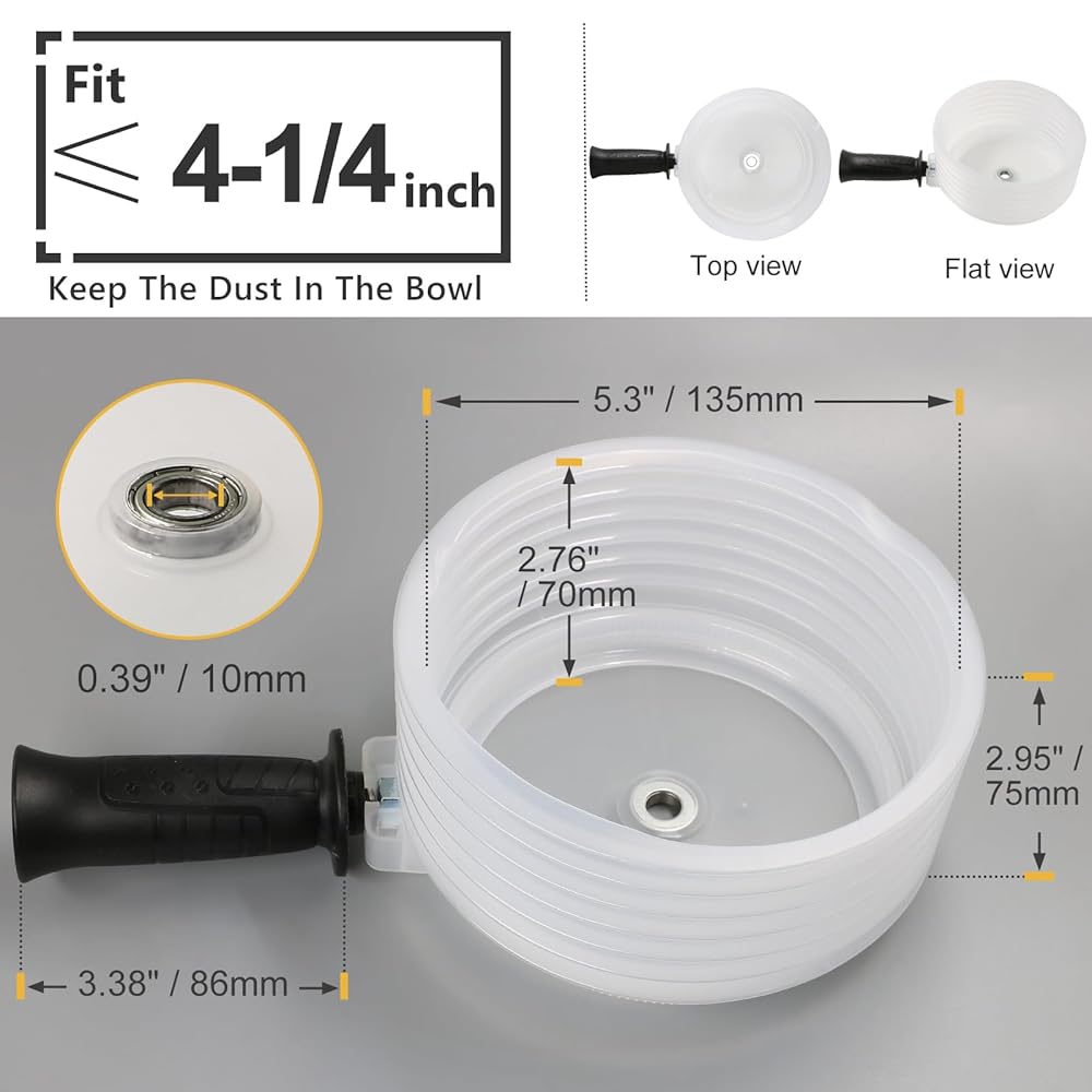 WIDE APPLICABILITY - Our product is designed to be compatible with hole saw sizes smaller than 6" / 152mm with arbor handles smaller than 10mm, making it a versatile addition to the drilling toolkit. Whether you're a professional contractor or a DIY enthusiast, this dust bowl is essential for clean and precise drilling.