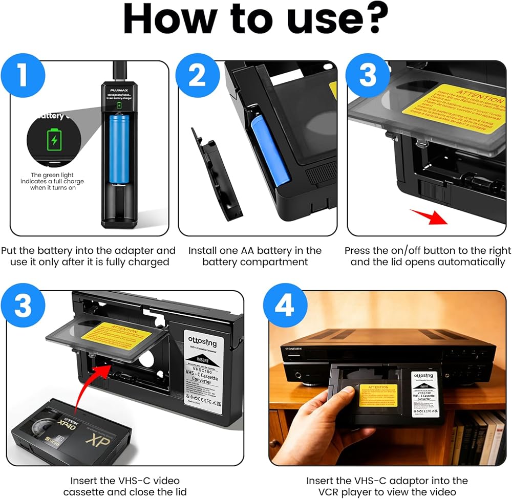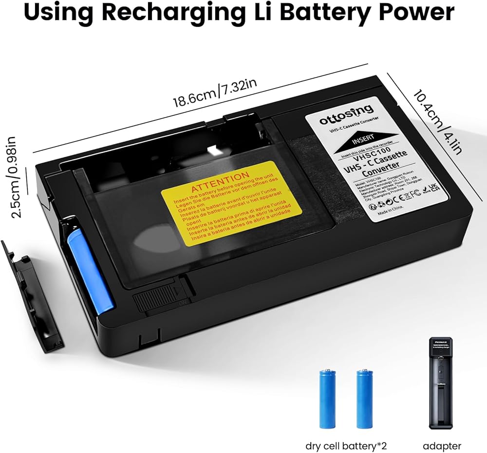 2026 New VHSC Cassette Adapter or VHS-C to VHS Motorized Adapter with Stable Voltage Circuit - 3.7V Dual Battery (Not Compatible with 8mm / MiniDV / Hi8) (Large)