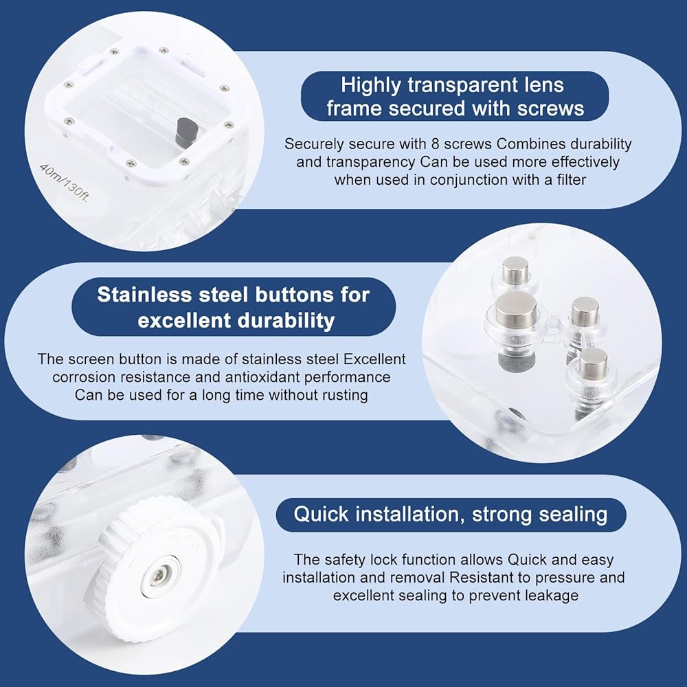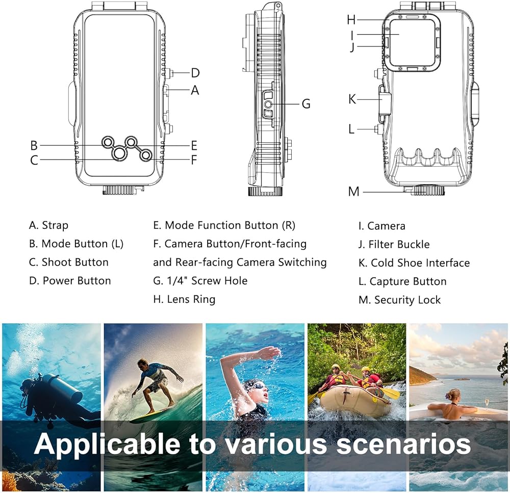 【Sensitive Touch Control & Easy-Seal Latch】Enjoy flawless touchscreen operation underwater thanks to sensitive conductive rubber touchpoints. Capture video, take photos, and swipe through menus with ease. The user-friendly rotary latch design ensures a secure, waterproof seal is simple to achieve every time.