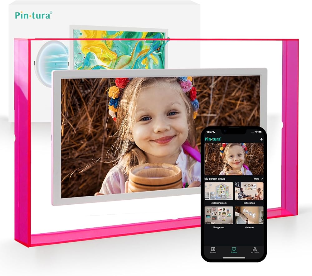 Instant & Secure Sharing – Send photos/videos to the frame via the free Pintura App (iOS/Android). Invite-only access and encrypted transfers protect your privacy