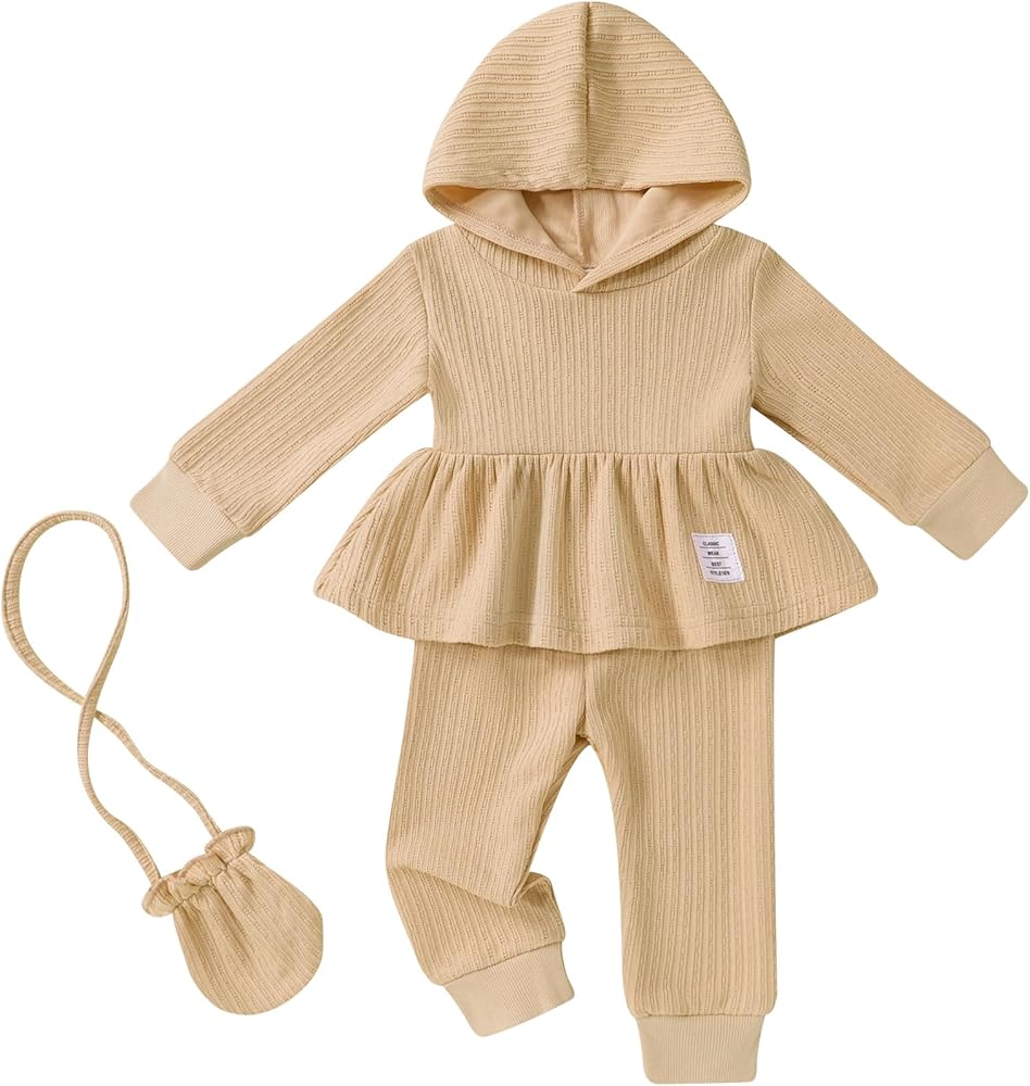 Design: Baby girl fall clothes, baby girl winter clothes, It features a long-sleeved hoodie shirt, ruffles top with a cute unique label, matching with solid color pant and cute bag, offering a simple yet pretty design that is both fashionable and practical. Pretty girl' wardrobe must have cute classical clothes set
