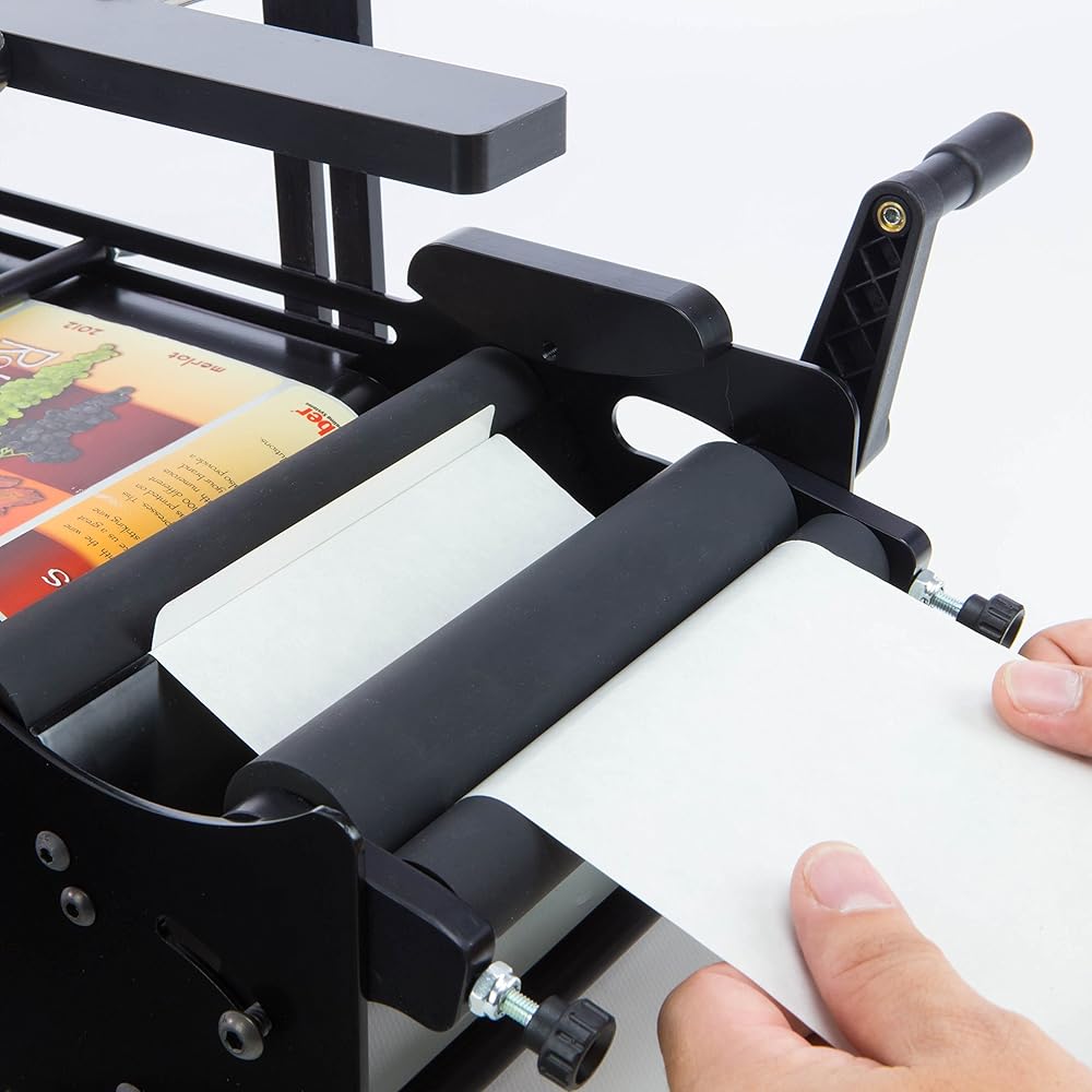 ملصق للزجاجات اليدوية للجولات القصيرة من الزجاجات والعصي والبرطمانات والأشياء الاسطوانية الأخرى. يطبق الملصقات على الاسطوانات من 0. 5 إلى 6. 5 (13 إلى 165 مم) في القطر للملصقات من 1 إلى 6. 5 (25 إلى 165 مم) للعرض ومن 0. 5 إلى 12 (13 إلى 305 مم) للطول لا توجد أدوات مطلوبة للتعديل على مختلف أحجام الملصقات تسجل الملصقات في نفس المكان للوسم المتسق