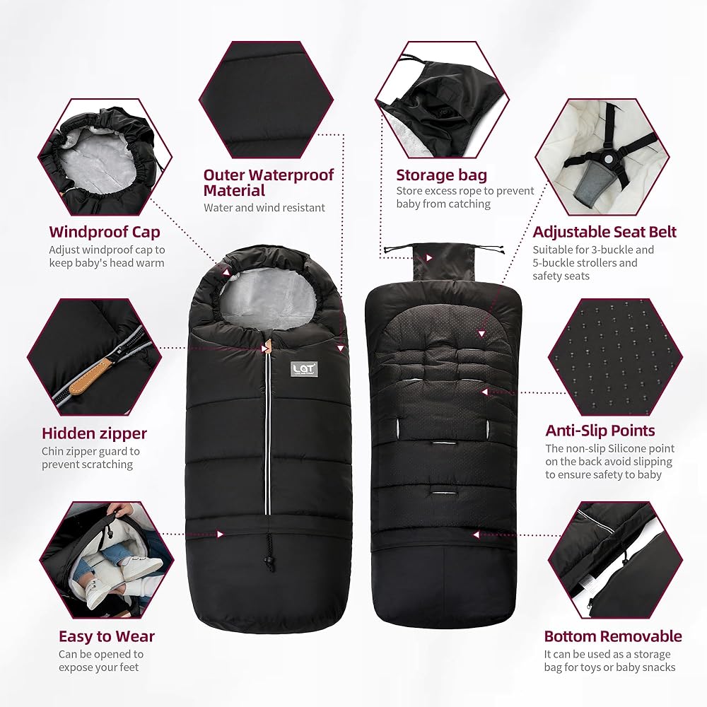 [UNIVERSAL FIT]: LAT stroller Bunting Bags Size: Basic 105*43CM and Oval Detachable 104*50CM.Our Footmuff can fit most pushchairs, buggies, prams,strollers and car seats,Suitable for babies from 3 to 84months. Allows your little one to sleep comfortably even on cold days.
