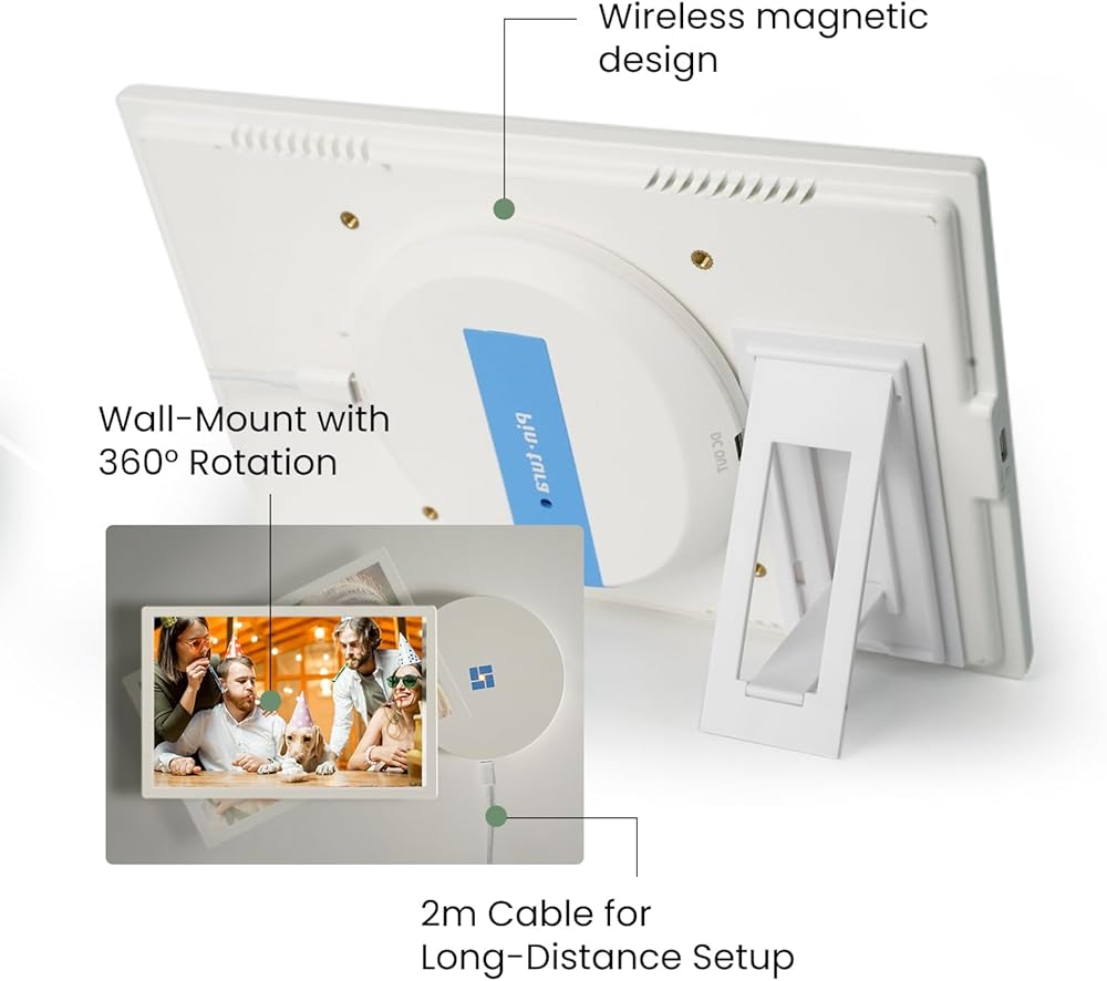 Magnetic 360° Wall Mount – Install in seconds without nails. Rotate portrait/landscape to capture kids' milestones or holiday gatherings. Ultra-wide 178° viewing angle adapts to any room layout