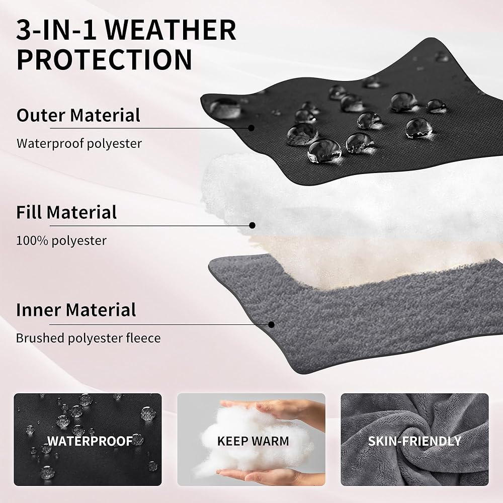 Windproof & Waterproof Shell blocks icy gusts and light rain/snow.