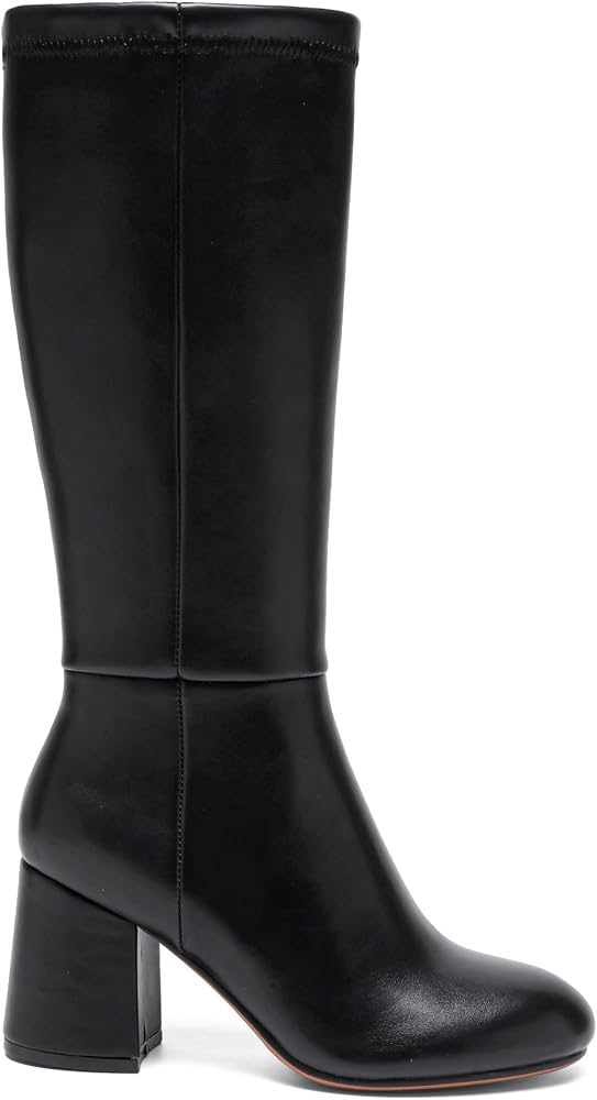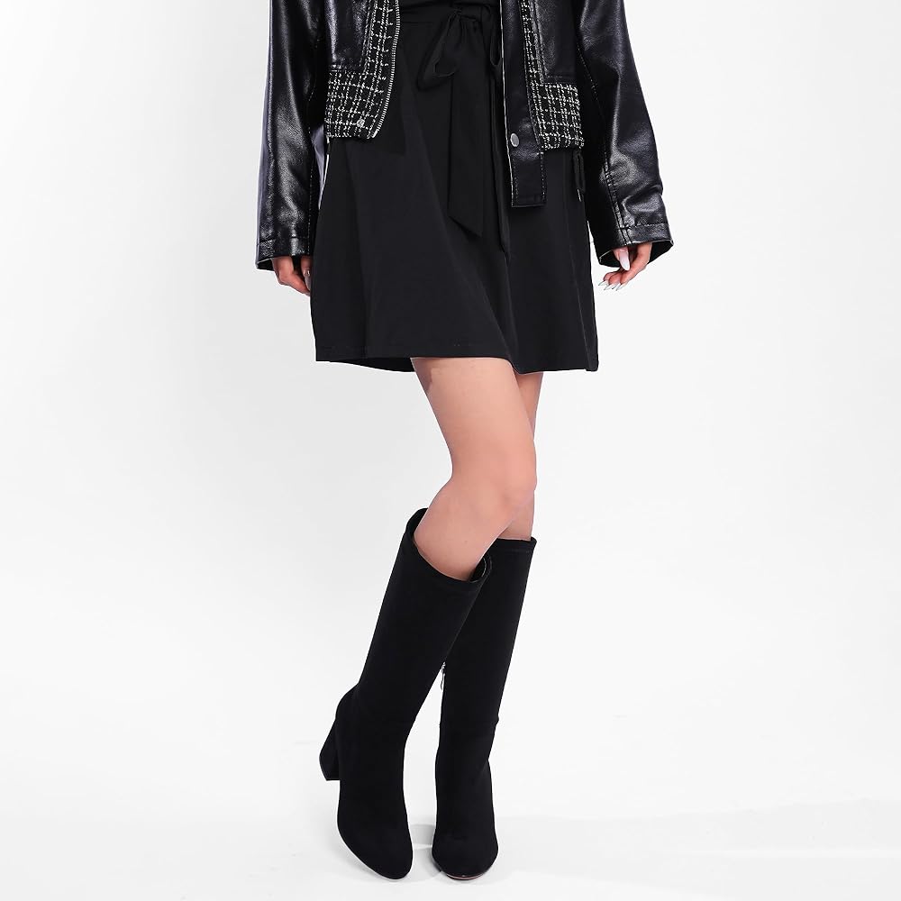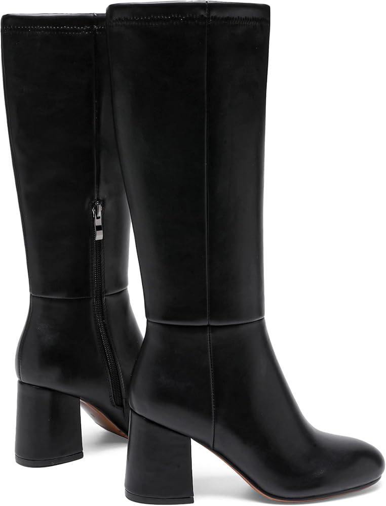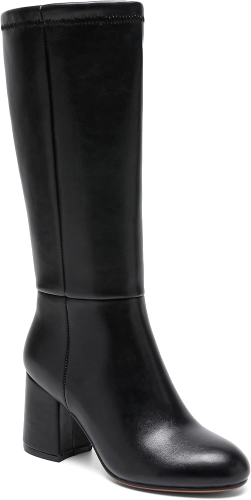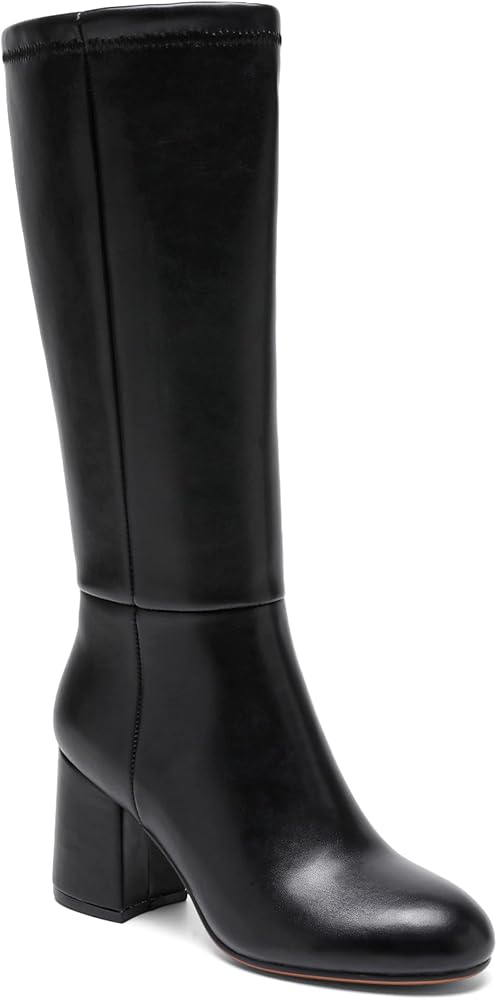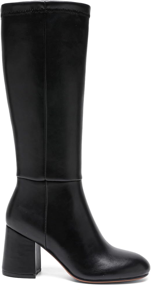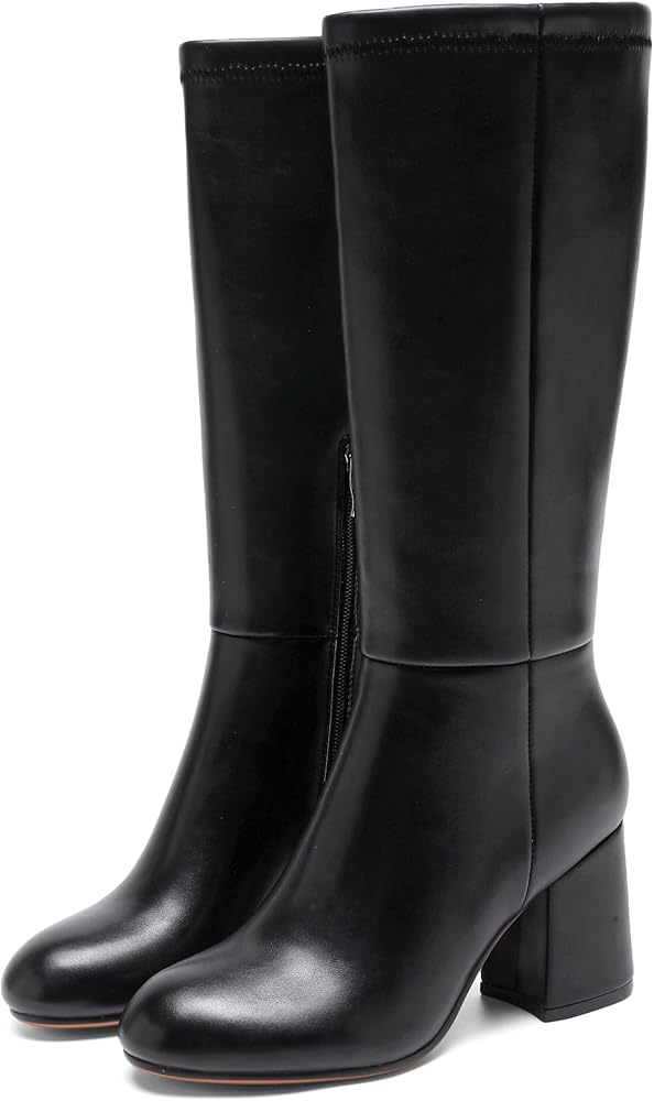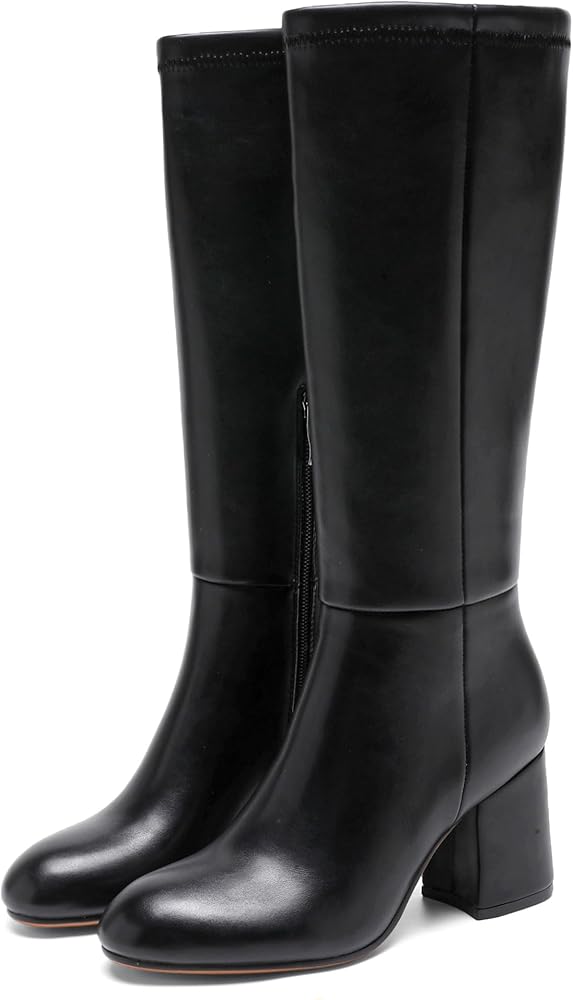 Knee High Boots Women Chunky Block Heel Fall Boots for Women Comfortable Almond Toe Side Zipper Heeled Boots