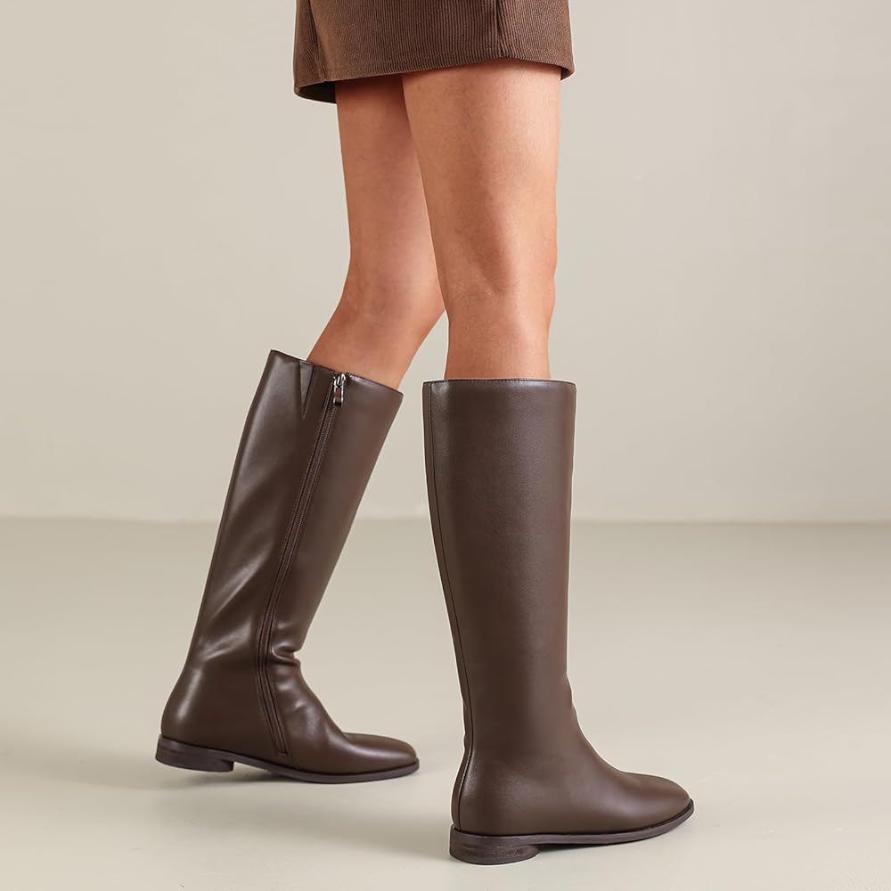 Flat Knee High Boots for Women - Tall Boots Casual Walking Boots with Side Zipper | Comfortable Boots High BootsCommute Travel Booties for Fall Winter Outfits