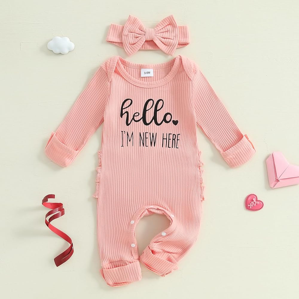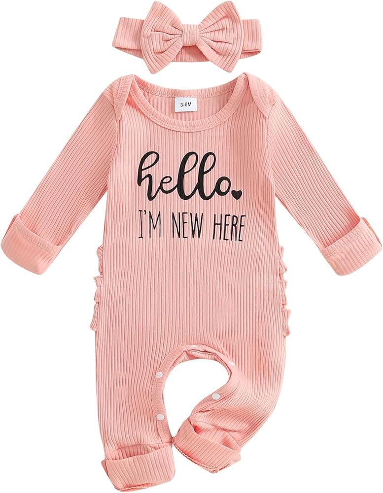 Design:Newborn clothes baby girl, girl clothes, baby girl fall outfits, baby girl winter clothes, winter baby girl clothes, baby winter clothes, baby girl outfits, fall baby outfit, long sleeve doll collar romper jumpsuit,long sleeve letter print ''Im New Here'' Newborn Outfit, bottom button design, classic and fashion, make your little girl look cute and beautiful