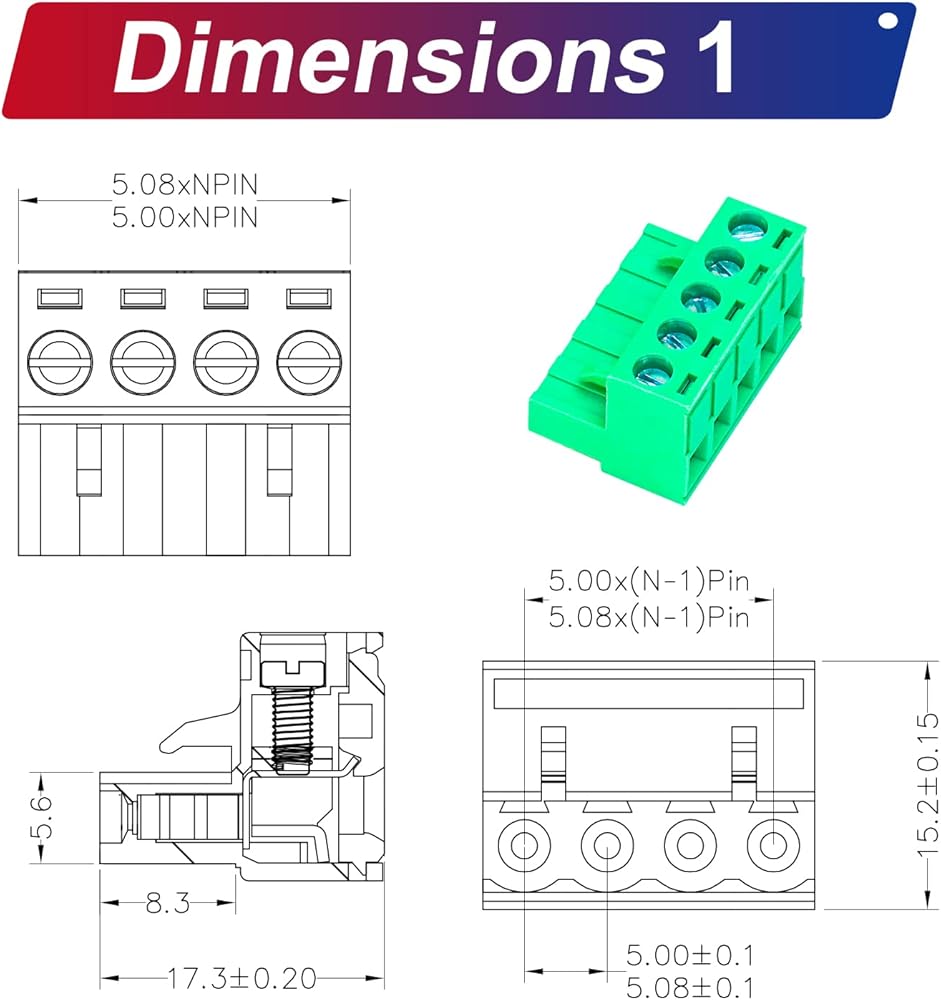[Specification] Terminal spacing: 5.08mm Male & Female; They are heat resistant, flame retardant and current balanced to ensure no leakage. Low signal loss and high switching frequency