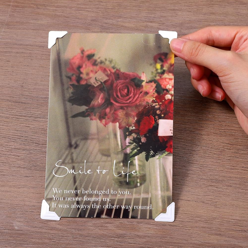 【Easy to Use】 The picture corners for scrapbooking are self-adhesive. When using, you only need to tear them off and paste, without additional glue. Put the corner of the photo into the scrapbook photo corners and then fix it to the target position