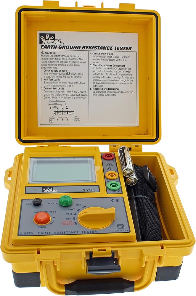CARRYING CASE INCLUDED: The IDEAL Earth Ground Resistance Tester comes with a hard durable carrying case so that you can safely and easily transport it from worksite to worksite.